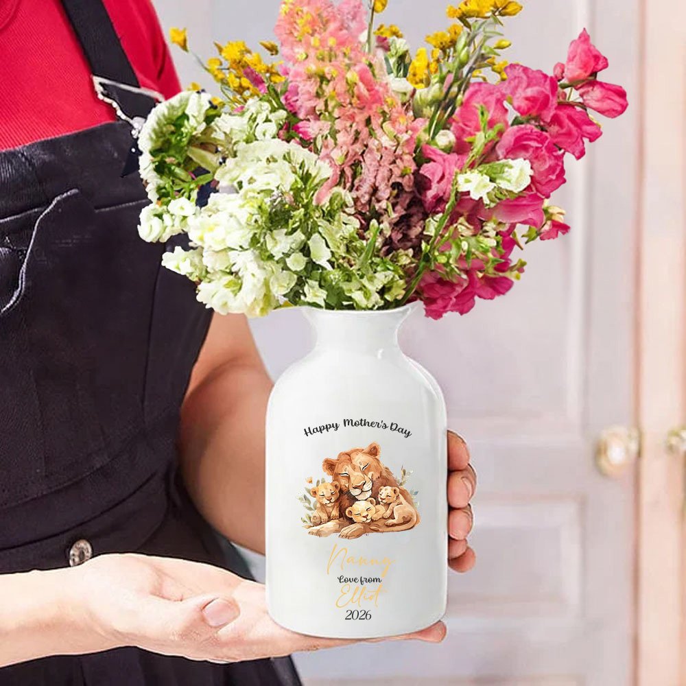 Diese Vase ist zum Thema Muttertag gestaltet. Jede Vase hat 46 Tierstile, aus denen Sie wählen können, und Sie können auch den Namen, Titel und Spitznamen der Mutter anpassen. Lassen Sie diese Vase voller emotionaler Farbe sein. Wir bieten 3 Stile an, um Ihre Auswahl zu bereichern.