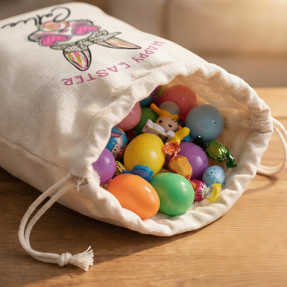 Aus hochwertigem Canvas gefertigt, ist sie robust und langlebig, reißfest und dehnbar und kann problemlos kleine Geschenke wie Ostereier, Schokolade, Bonbons und Spielzeug transportieren. Dank des Kordelzugs lässt sich die Geschenktüte fest, bequem und sicher verschließen. Die Muster und Namen sind klar und deutlich aufgedruckt, und die Farben verblassen auch nach mehrmaligem Gebrauch nicht leicht.