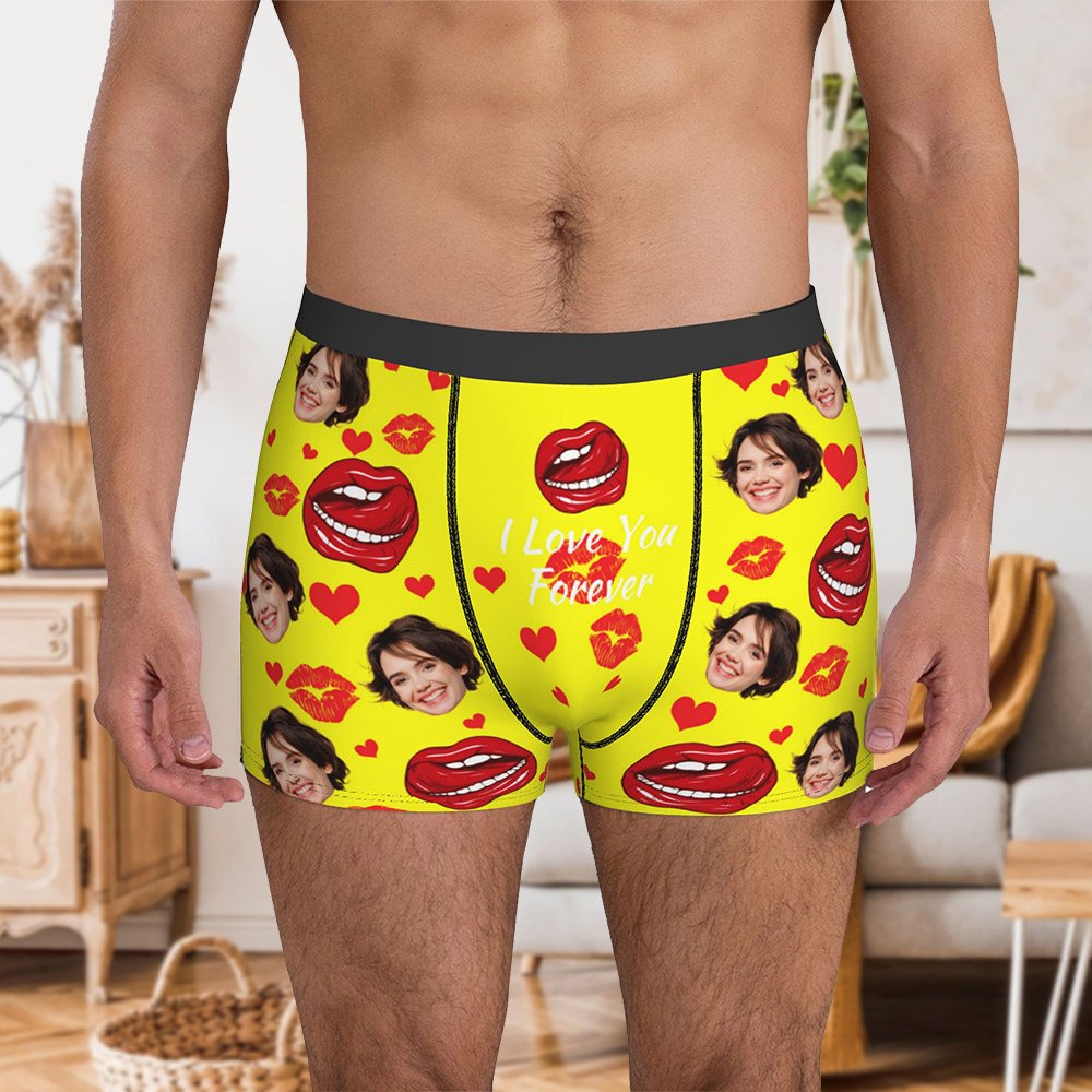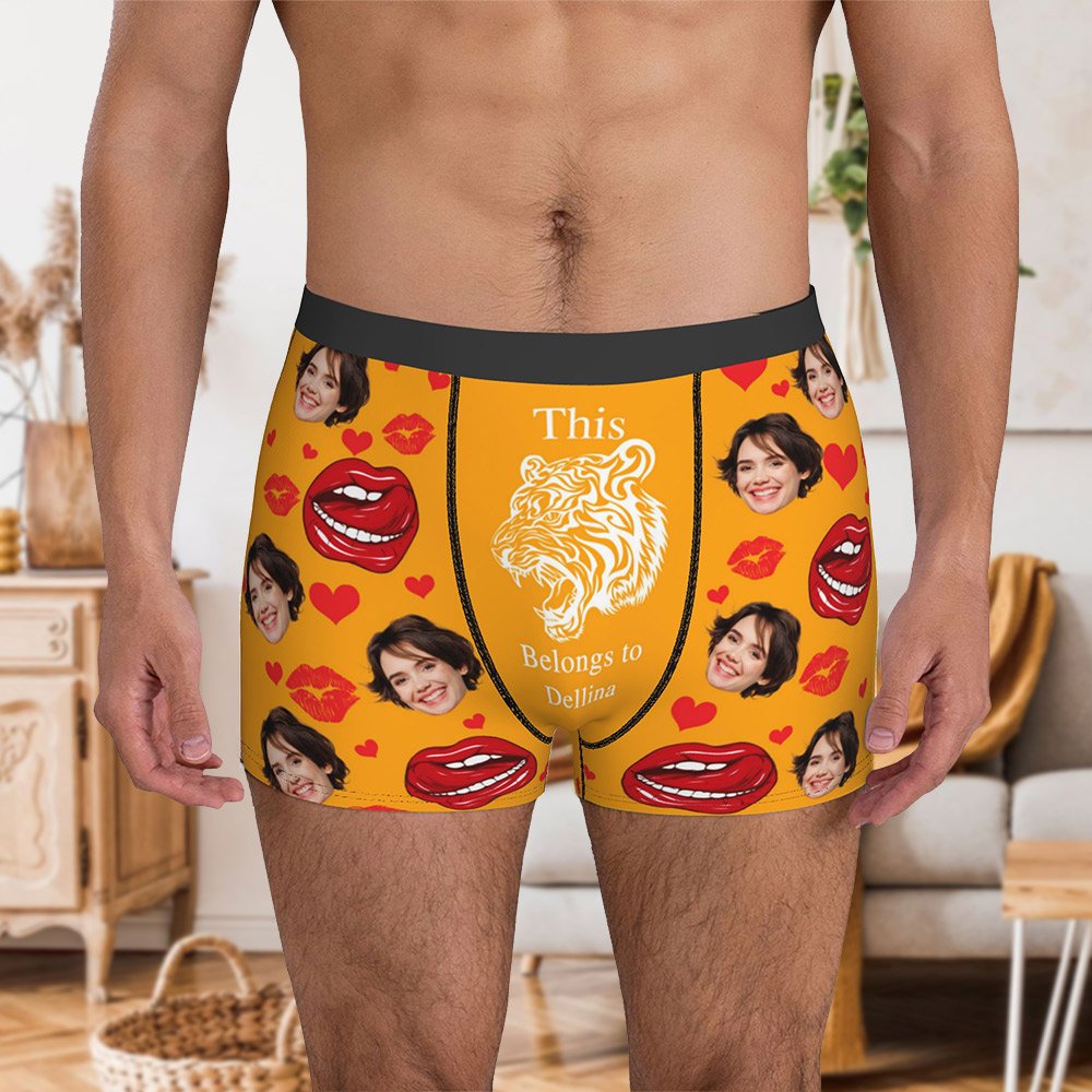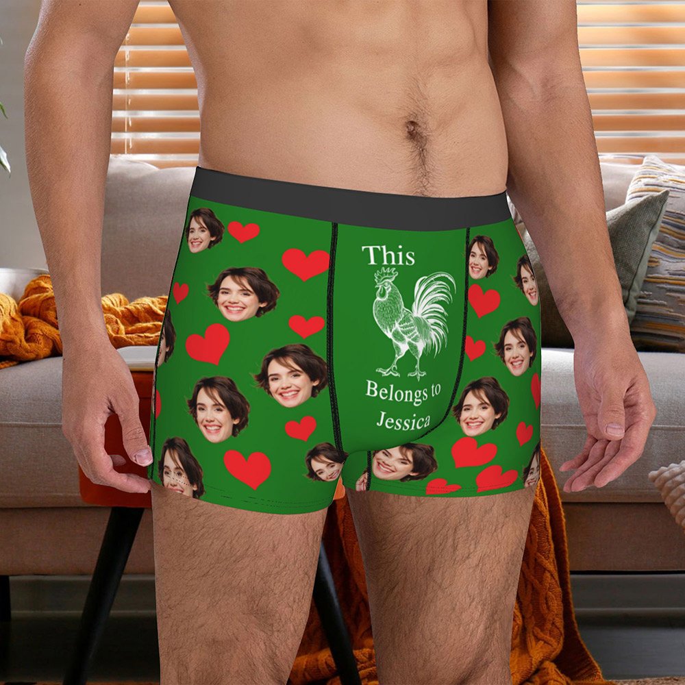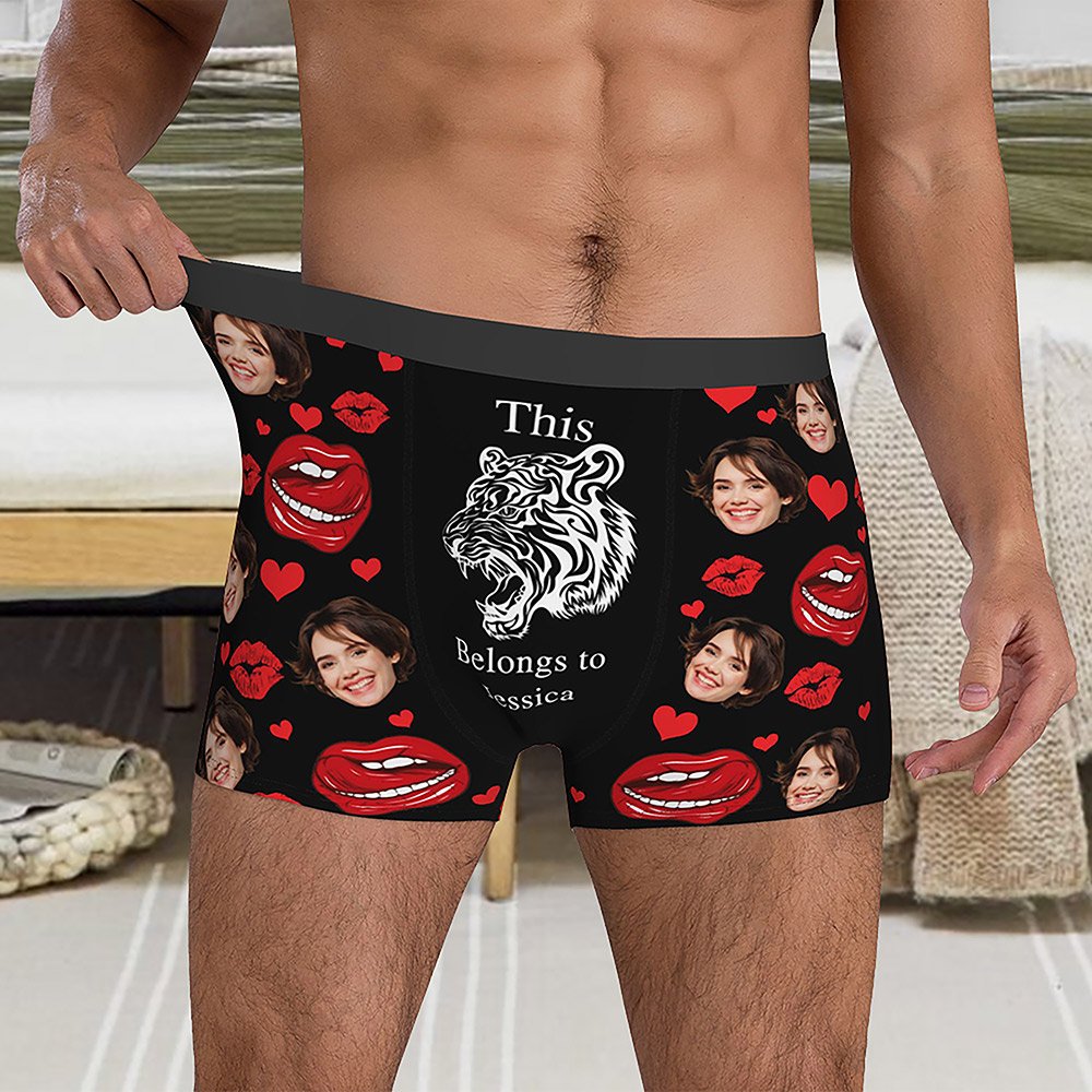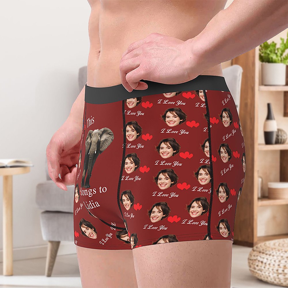 Der Boxerslip für Männer hat ein kreatives und lustiges Design, mit dem du deine Liebe auf einzigartige Weise ausdrücken kannst. Mit anpassbaren Optionen wie Gesichtsfotos, Namen und verspielten Mustern wie Hähnen, Elefanten, Boas, Tigern und so weiter verleiht diese Unterwäsche eine persönliche Note, die auffällt.