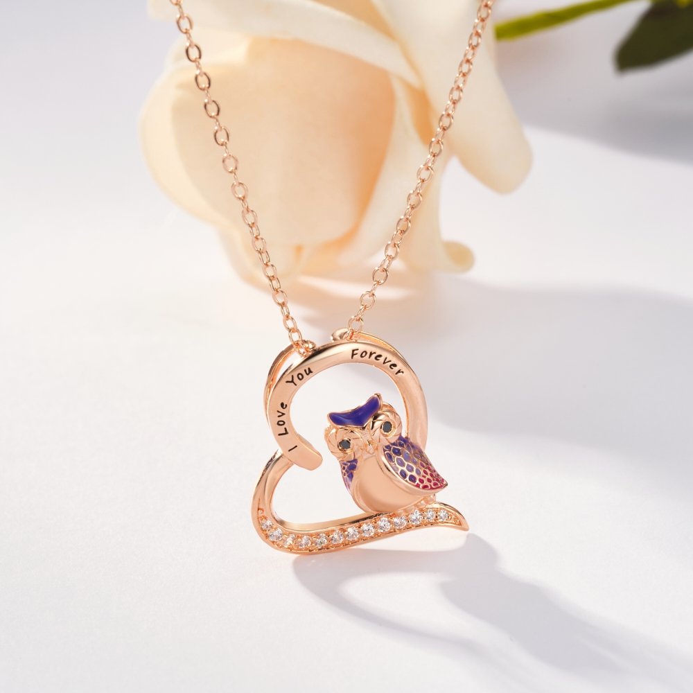 Ideal für Geburtstage, Jahrestage oder besondere Anlässe. Die Kombination aus symbolischer Eulenweisheit, herzförmiger Liebe und funkelnden Elementen schafft ein bedeutungsvolles Stück, das sowohl als schönes Accessoire als auch als geschätztes Andenken dient.