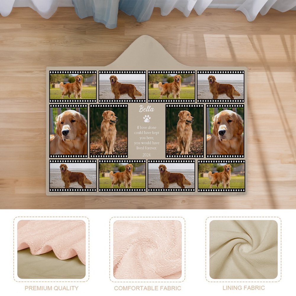 Mit 10 oder 12 individuellen Fotos von Hunden oder Katzen und den 4 speziellen Haustier-Gedenktexten fängt sie die Essenz der besonderen Bindung zwischen Haustieren und ihren Besitzern ein. Mit dem Namen des Haustieres personalisiert, wird diese Decke zu einem einzigartigen Tribut, der hilft, die Erinnerungen lebendig zu halten und denjenigen Trost zu spenden, die den Verlust ihrer pelzigen Freunde betrauern.