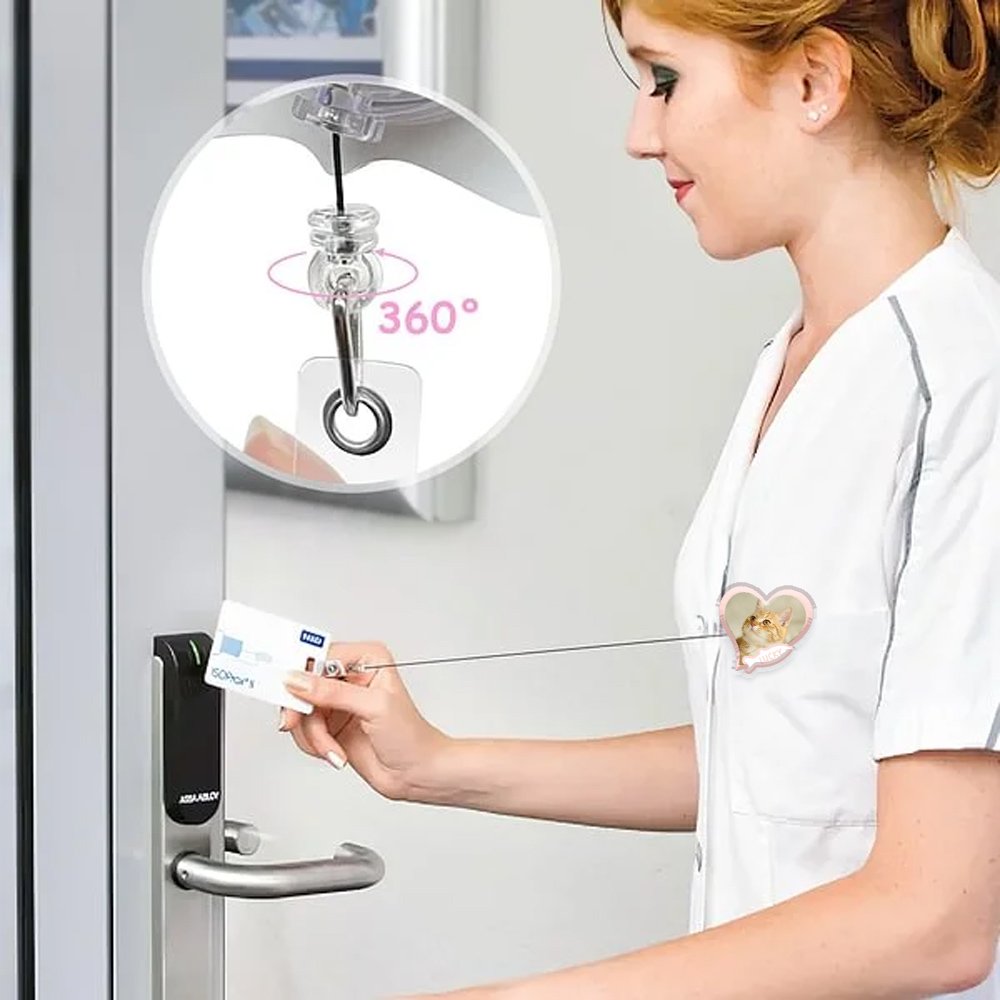 Dieser praktische, ausziehbare Ausweishalter verfügt über einen stabilen Metallclip auf der Rückseite, mit dem er sich leicht an Ihrer Kleidung befestigen lässt. Der transparente Clip an der Unterseite eignet sich perfekt für die Präsentation von Ausweisen, Arbeitsschildern oder anderen Anhängern, so dass diese immer zugänglich sind.