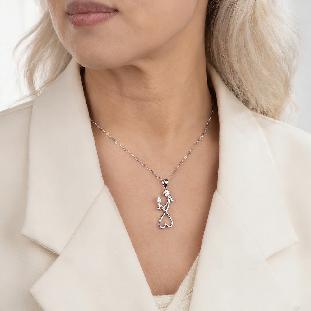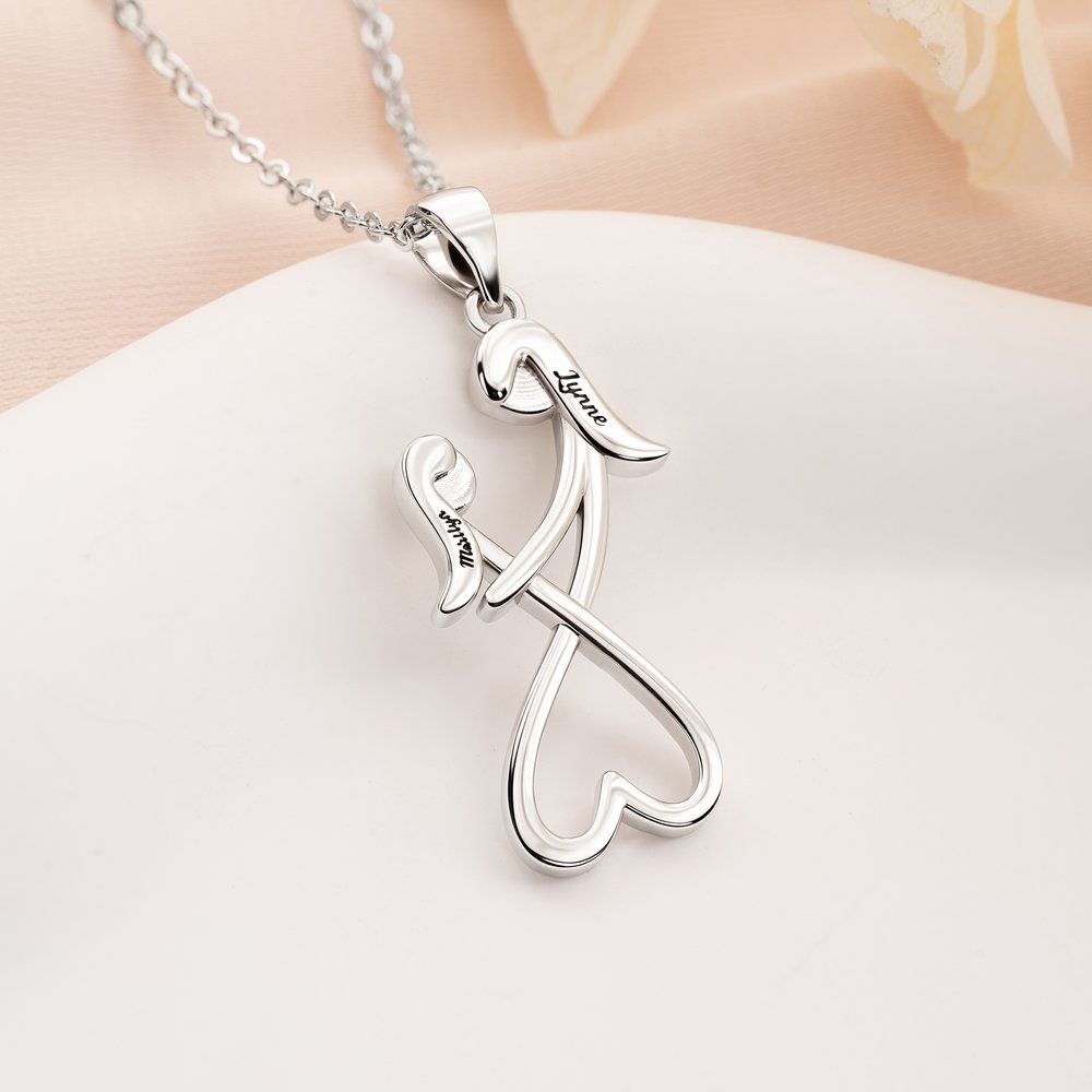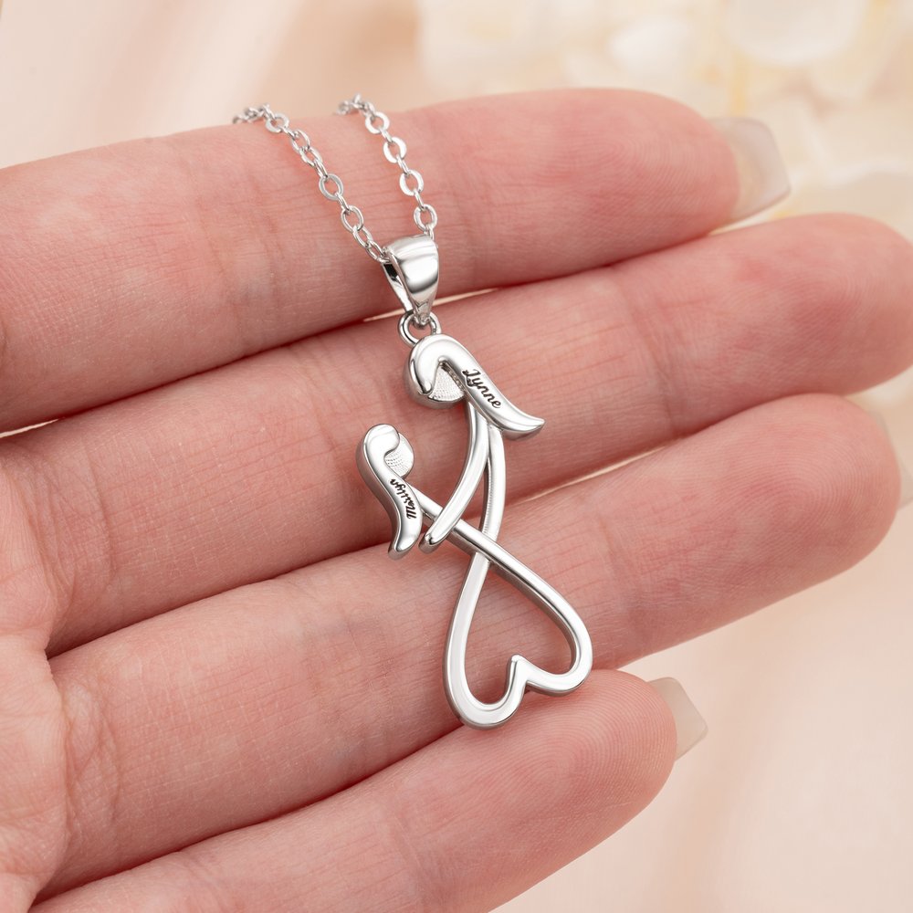 Diese Halskette mit ihrem kreativen, abstrakten Design ist inspiriert von der unverbrüchlichen Verbindung zwischen Mutter und Kind. Die ineinander verschlungenen Figuren von Mutter und Tochter bilden eine perfekte Herzform und symbolisieren tiefe Zuneigung und Einheit. Sie können dieses einzigartige Schmuckstück durch eine Namensgravur auf den Silhouetten personalisieren. Diese eleganten Elemente verwandeln Standardschmuck in eine gefühlvolle Erzählung.