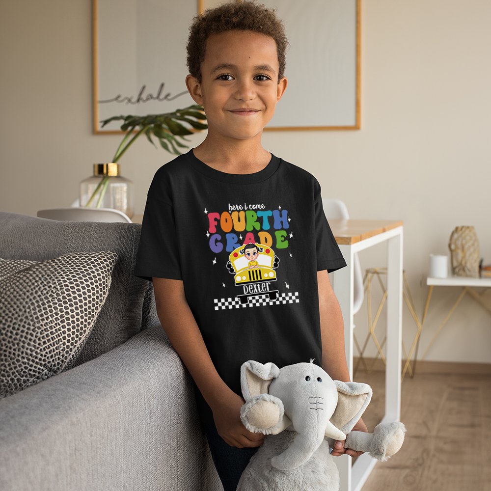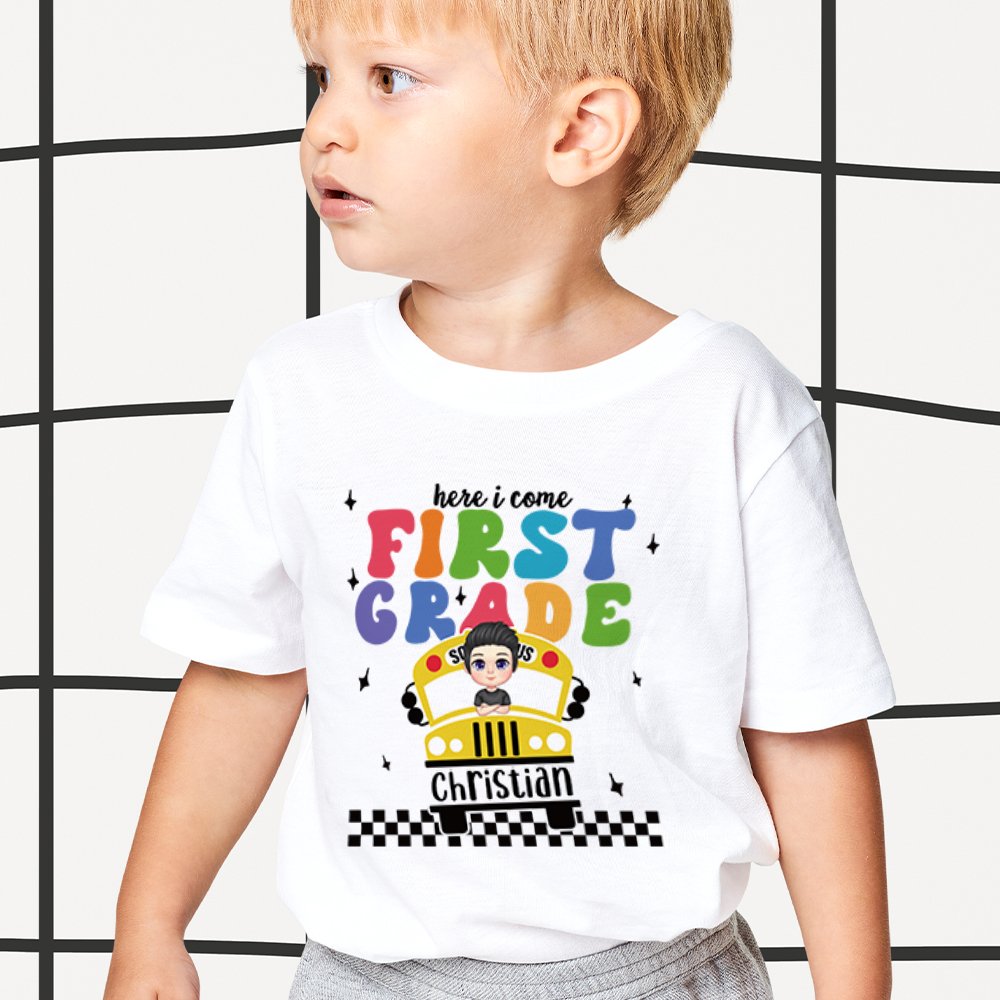 Das T-Shirt ist mit einem "Here I Come"-Slogan versehen, der mit dem Namen Ihres Kindes personalisiert werden kann. Dies verleiht dem Outfit einen besonderen Touch und macht es zu einem einzigartigen Erinnerungsstück, an das sich Ihr Kind jahrelang erinnern kann.