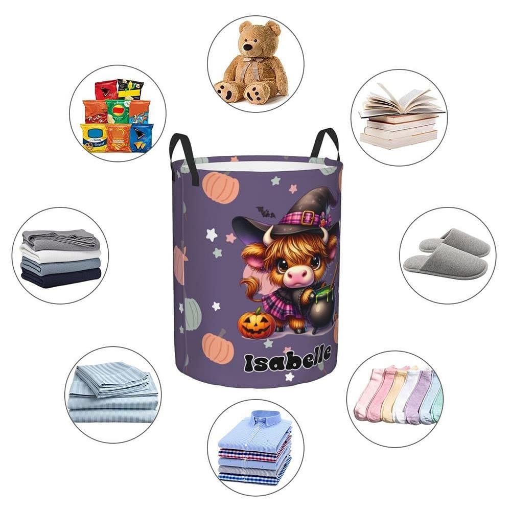 Dieser Aufbewahrungskorb kombiniert die niedliche Hochlandkuh geschickt mit Kürbissen, Süßigkeiten und anderen einzigartigen Festivalelementen, die sofort eine festliche Atmosphäre verbreiten. Der Name kann individuell angepasst werden, um ein einzigartiges, persönliches Geschenk zu kreieren. Er passt nicht nur zum Thema des Festes, sondern kann auch eine fröhliche Atmosphäre in die Wohnung bringen und Kindern unvergessliche Erinnerungen hinterlassen.