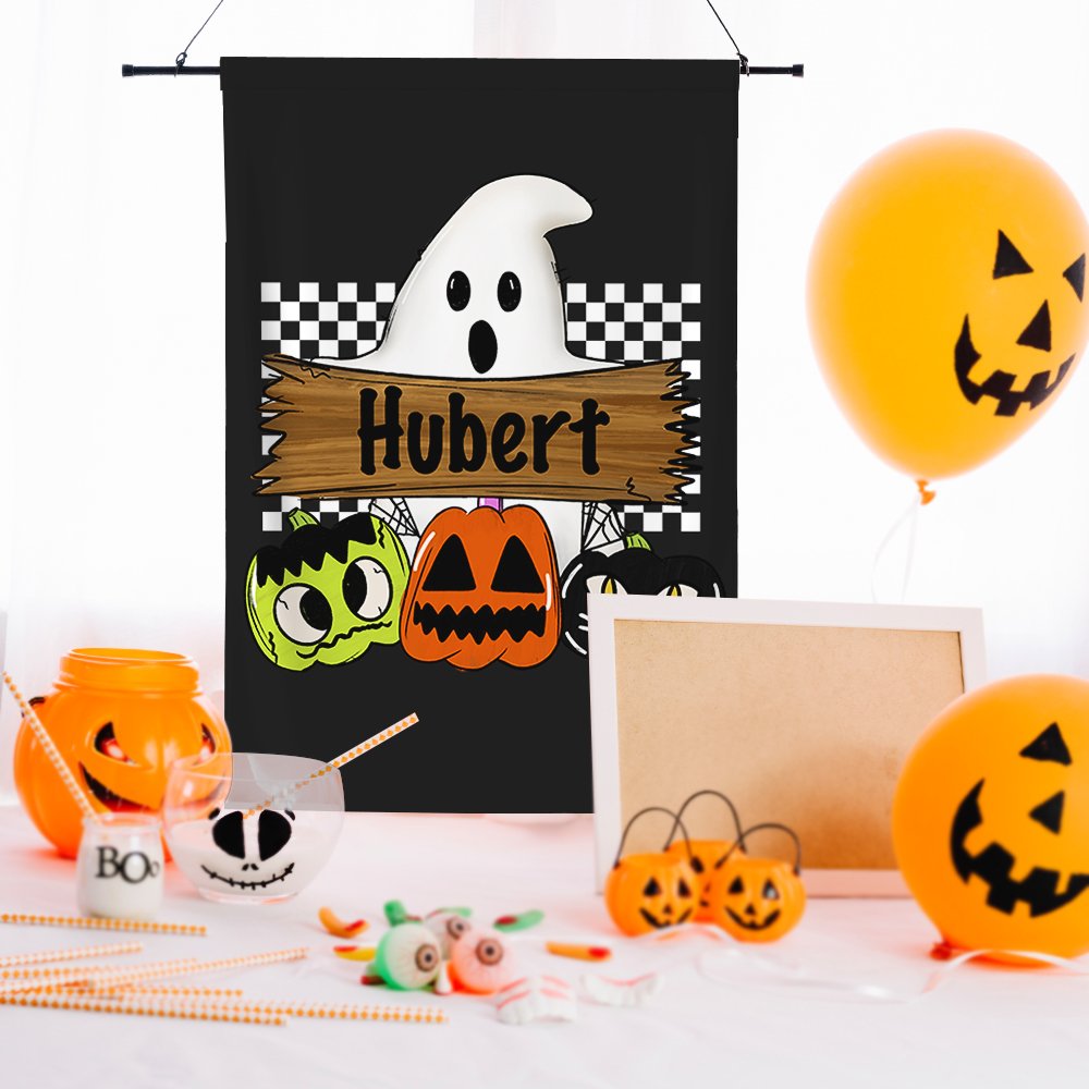 Ein niedliches Gespenst, das ein mysteriöses Schild mit einem Kürbis in Form einer Fledermaus/schwarzen Katze hält, das Gespenst symbolisiert eine Mutter, die ihre Kinder durch Halloween führt und das Schild trägt, als ob es Slogans für Ihre fröhlichen Feiern ruft, was dem Garten einen Hauch von Niedlichkeit verleiht, Sie können auch Namen/Familiennamen zu dem erhöhten Schild hinzufügen, wodurch Ihre Flagge nicht nur die fröhliche Atmosphäre von Halloween, sondern auch den Teamgeist der Familie widerspiegelt. (HOHE QUALITÄT): Die Halloween-Fahnen bestehen aus hochwertigem Polyester, sind langlebig, UV-beständig und farbecht und können Ihren Halloween-Feiern im Garten, auf der Terrasse oder bei Veranstaltungen im Freien Farbe verleihen.