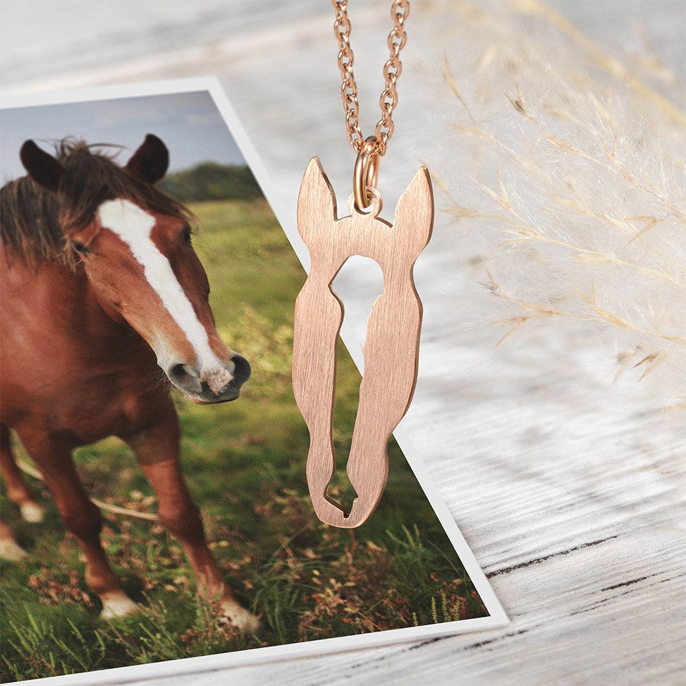 Die Kette ist zierlich, aber fest und wird nicht leicht zu brechen sein. Mit unserer Pferdeanhänger-Halskette mit speziellem Silhouetten-Design werden Sie Ihren Liebsten sicher überraschen.