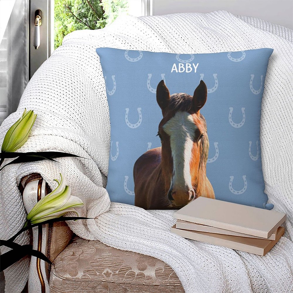 | Merkmale: | Weich und kuschelig, unsichtbarer Reißverschluss, Hufeisen-Stil, Pferdegesicht-Foto-Design, Namensanpassung |