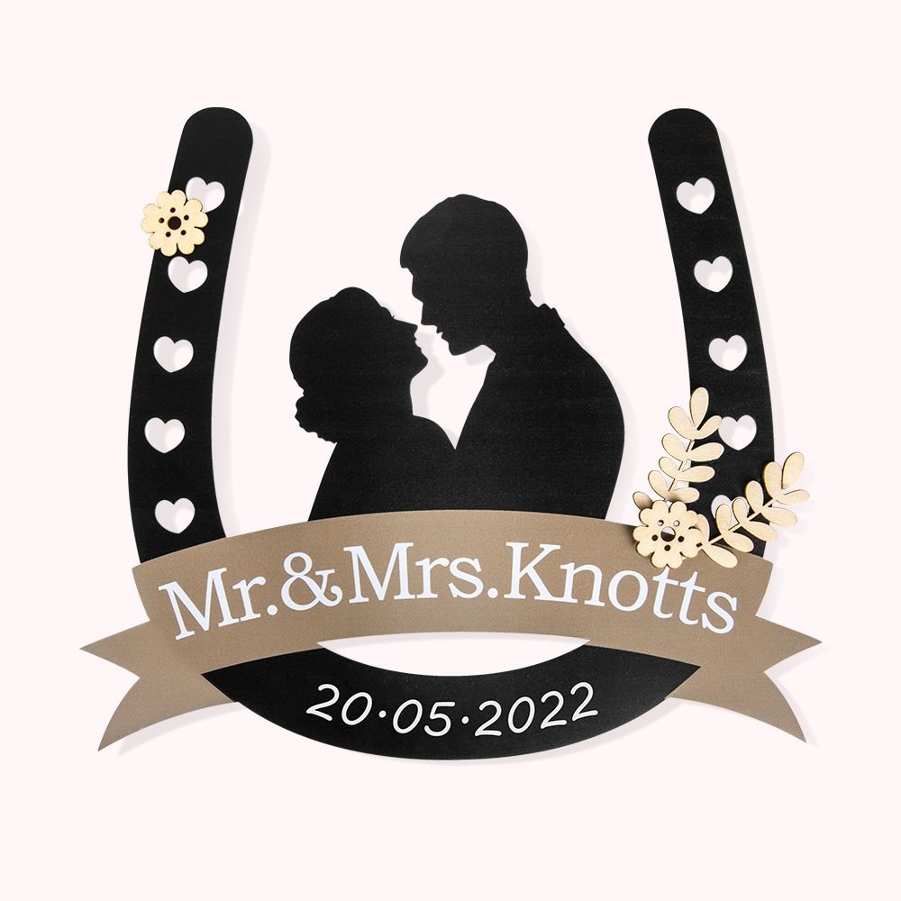 Diese Wanddekoration für Neuvermählte nimmt das Element eines Hufeisens im Design an. Das Hufeisen symbolisiert Glück und Schutz, und es hat die Bedeutung des Segens für die Neuvermählten. Als Material verwenden wir hochwertiges Eisen, das es nicht nur stark, sondern auch sehr langlebig macht.