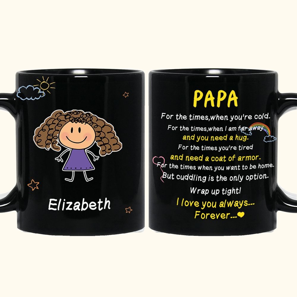 The black ceramic finish adds a touch of elegance and sophistication, making it a stylish addition to any kitchen, office, or living space. This mug is a perfect way to show your love and appreciation for your loved ones in a simple yet meaningful way.