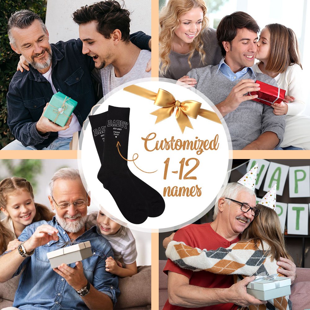 Dieses einzigartige Paar Socken ist eine besondere Art und Weise, Ihre Liebe und Dankbarkeit für Ihre Familie zu zeigen, wie zum Beispiel für Ihren Vater, Ehemann oder Großvater. Die Socken können auch mit den Namen von 1-12 Kindern und Familienmitgliedern bedruckt werden, um die Socken noch besonderer zu machen.