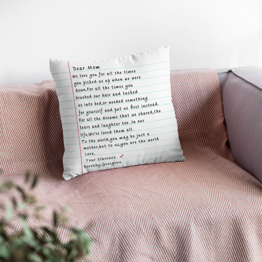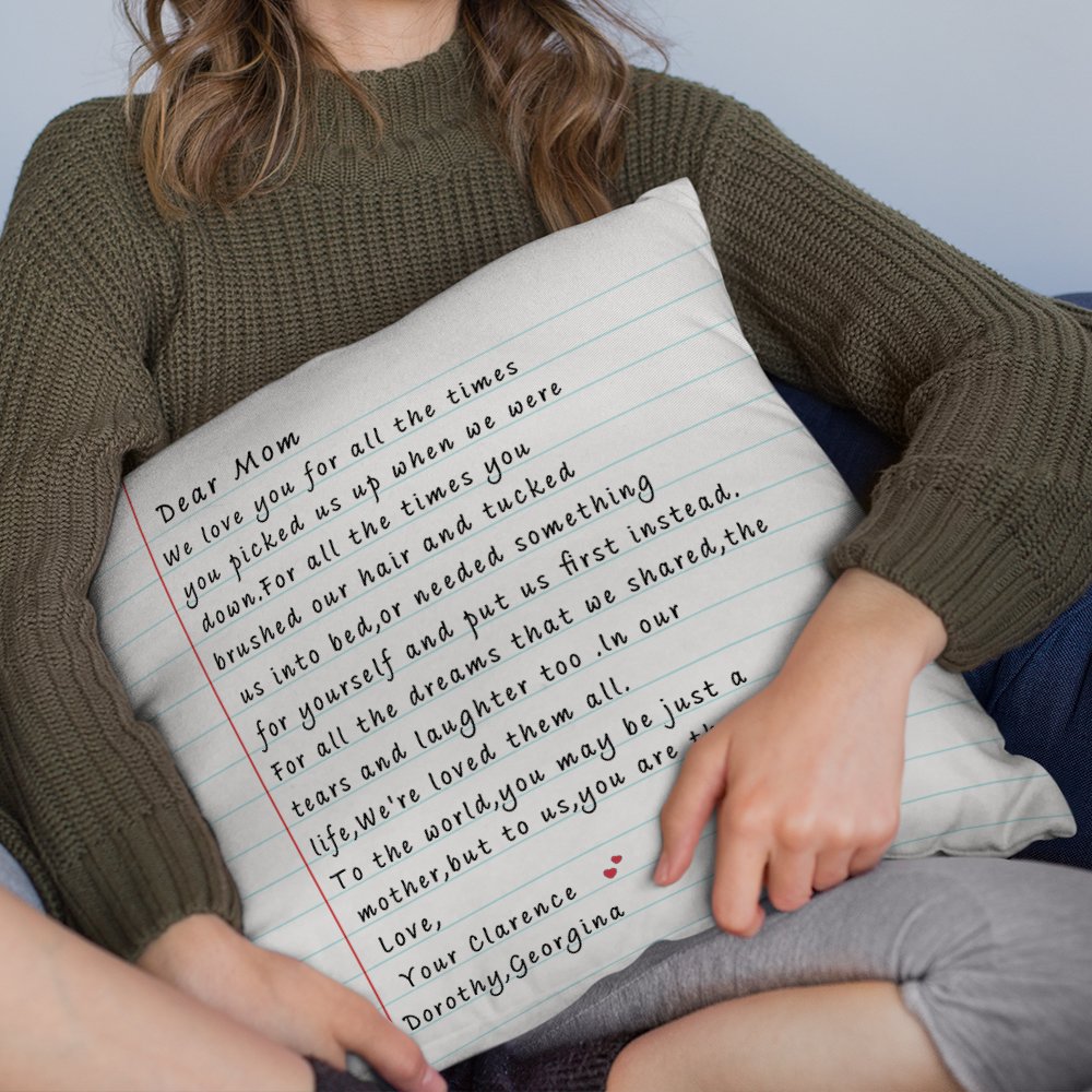 Dieser Kissenbezug ist wie ein Liebesbrief gestaltet, der Dankbarkeit und Liebe für die Familie ausdrückt. Es kann mit den Namen der Eltern, Kinder oder anderer geliebter Familienmitglieder versehen werden. Dieses durchdachte Detail verleiht dem Geschenk eine persönliche Note und macht es zu einem geschätzten Andenken, das jahrelang in Ehren gehalten wird. (HOCHWERTIGES MATERIAL): Bei diesem Kissen geht es nicht nur um das Aussehen. Es ist aus hochwertigen Materialien gefertigt, die sowohl ein schönes Aussehen als auch außergewöhnlichen Komfort gewährleisten. Das weiche und strapazierfähige Material garantiert eine lange Lebensdauer, und der verdeckte Reißverschluss macht das Einsetzen und Entfernen des Kissens zu einem Kinderspiel.