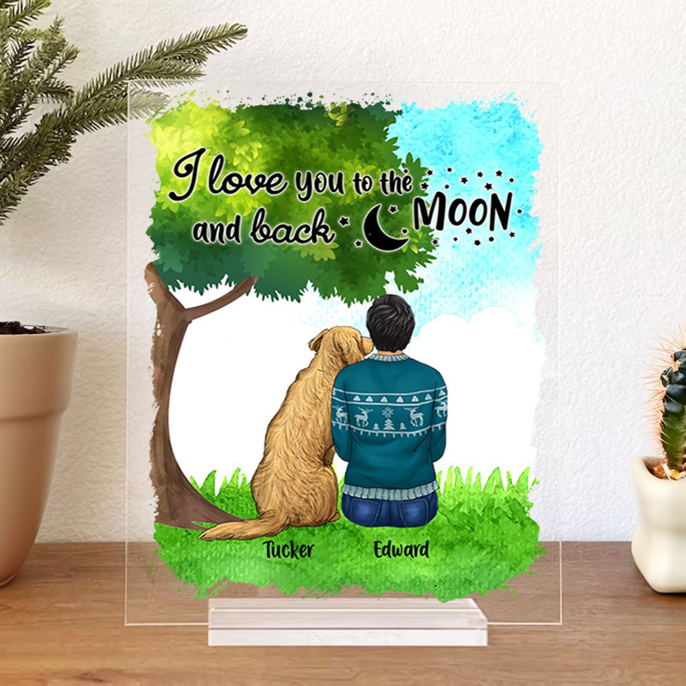 Personalisierte Ich liebe dich zum Mond und zurück Acryl Plaque Home Dekoration Geburtstag Weihnachten Geschenk für Hundebesitzer