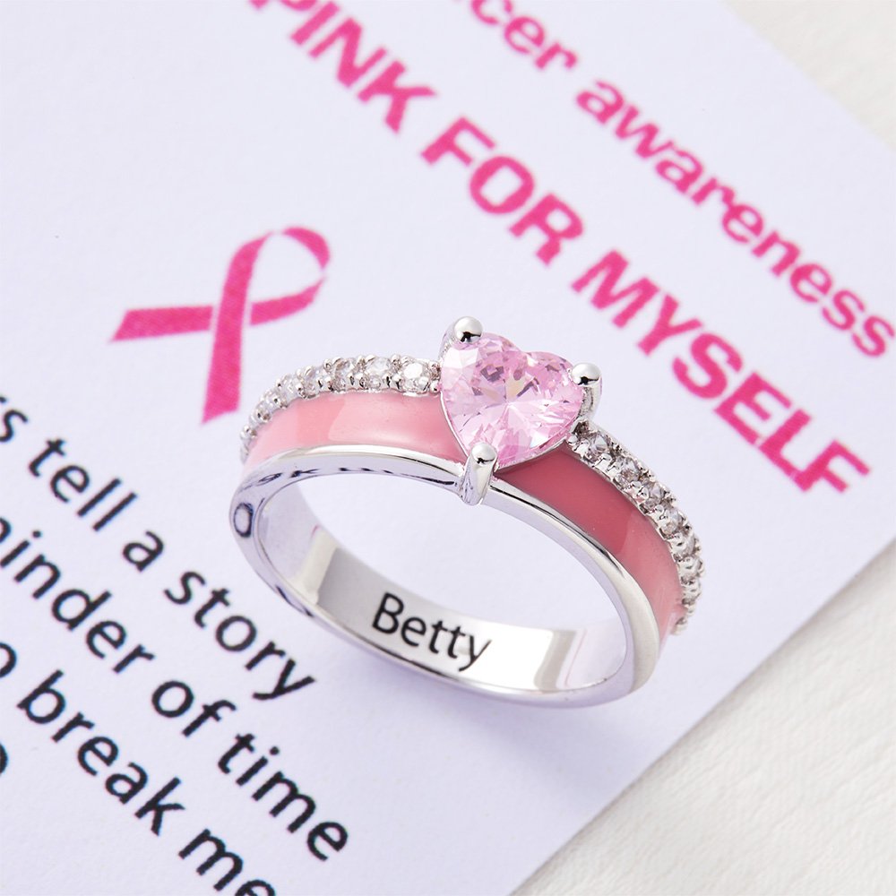 Dieser Ring ist eine Quelle der Inspiration und Stärke. Er erinnert den Träger an seine Reise als Krebskämpfer oder -überlebender und symbolisiert die Unterstützung für andere, die derzeit gegen Krebs kämpfen oder von ihm betroffen sind. Es ist ein von Herzen kommendes Geschenk, das Ihre Bewunderung, Ermutigung und unerschütterliche Unterstützung zum Ausdruck bringt.