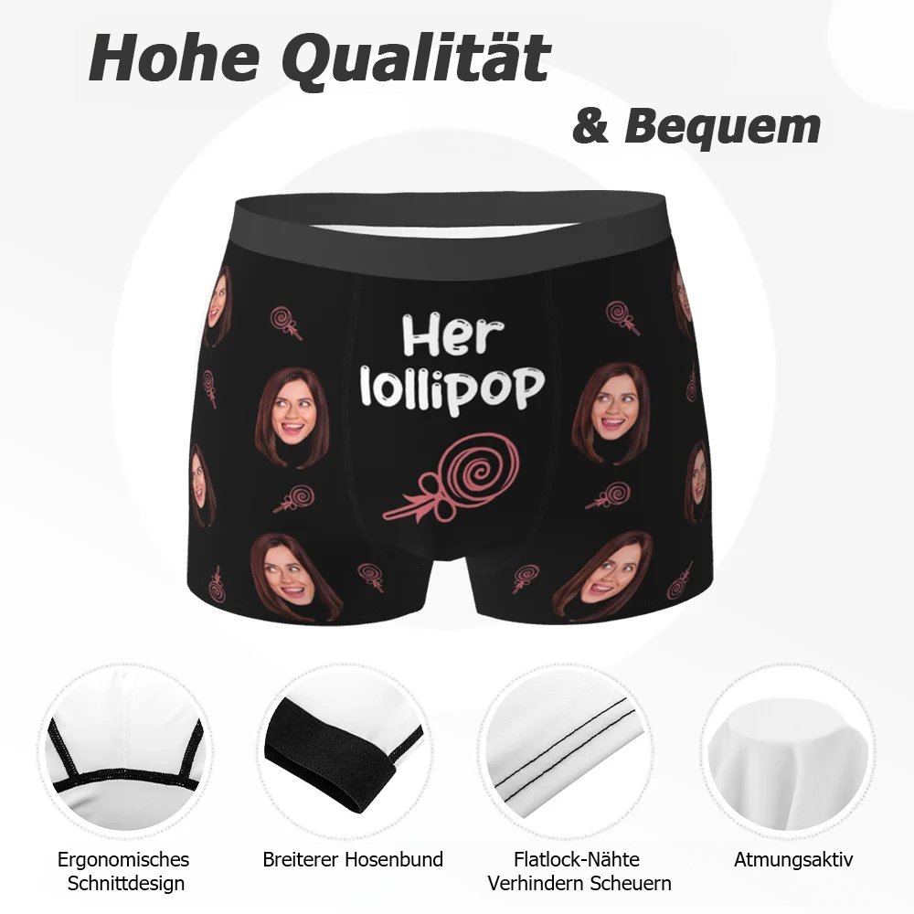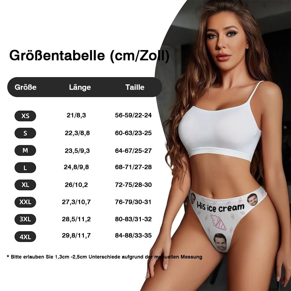 Dieser personalisierbare Valentinstags-Pärchentanga für Damen und Boxershorts für Herren kombiniert personalisierte und interessante Designs und ist damit ein besonderes Geschenk für Paare. Kunden können ihr Porträt hochladen, und das Design integriert das Porträt in das Muster, mit interessanten Texten wie „His ice cream“ und „Her Lollipop“, um einen einzigartigen und exklusiven Artikel zu schaffen. Das Gesamtthema ist süß, und niedliche Muster wie Eiscreme und Lutscher werden verziert, um eine romantische Atmosphäre zu schaffen.