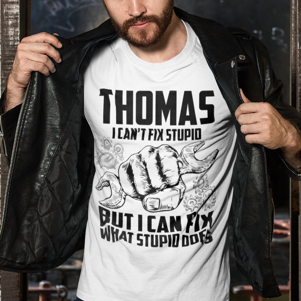 Der klassische Rundhalsausschnitt mit Faust- und Schraubenschlüssel-Print macht dieses T-Shirt zu einer perfekten Ergänzung für die meisten Kleidungsstücke in Ihrem Kleiderschrank. Es lässt sich leicht mit deiner Lieblingsjeans oder -shorts kombinieren, um einen täglichen und stilvollen Look zu erzielen.