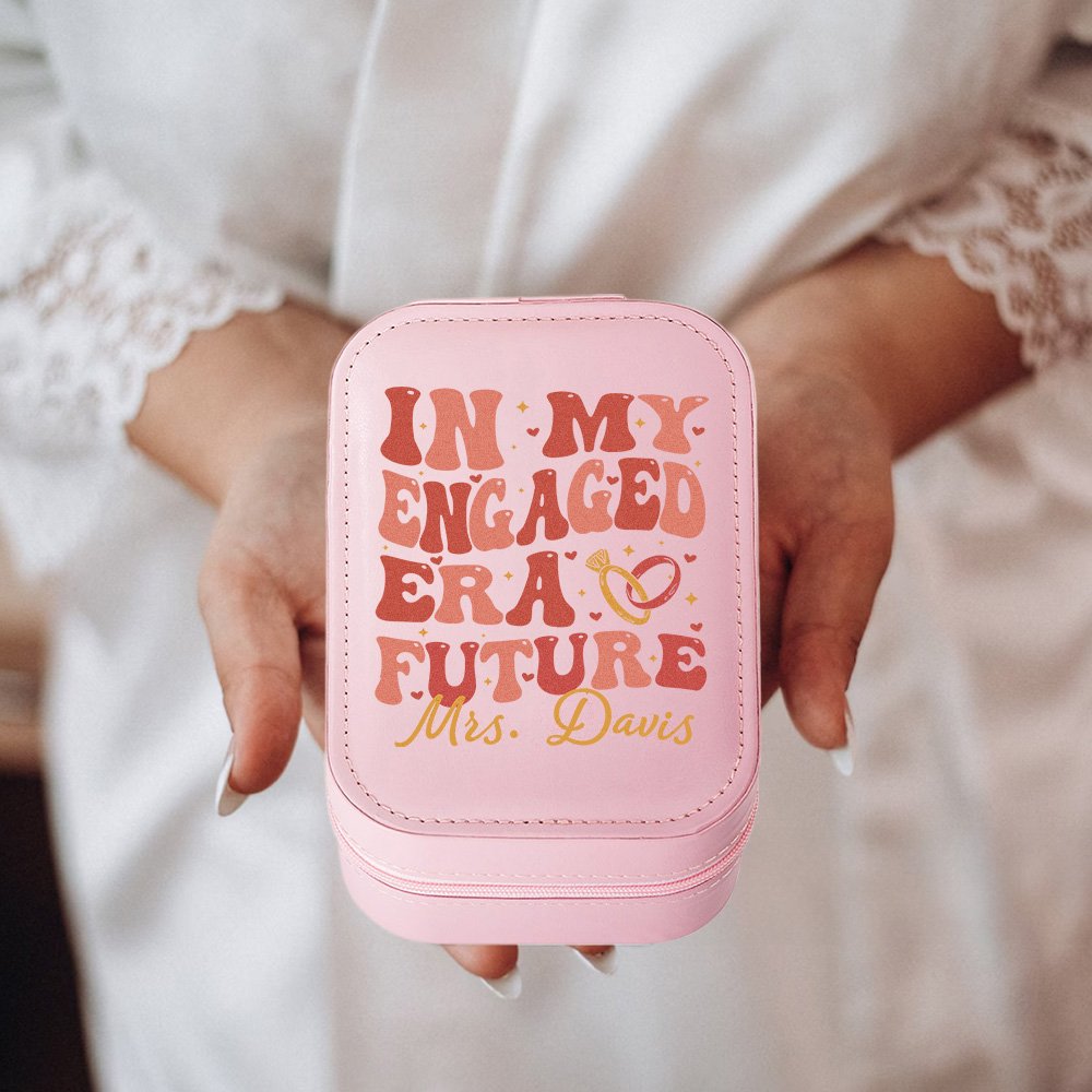 Das Design dieser Schmuckschatulle ist wirklich einzigartig. Der feststehende Text "In My Engaged Era Future" zusammen mit dem herzförmigen Ringmuster symbolisiert die Verpflichtung zur Verlobung. Dies dient als signifikante Darstellung des Wortes "Verlobt" und unterstreicht das Thema Romantik und das Versprechen der Ehe. Um dieses Schmuckkästchen noch persönlicher zu gestalten, können Sie Ihren Namen unter das Design schreiben und ihm so eine besondere Note verleihen, die es einzigartig macht.