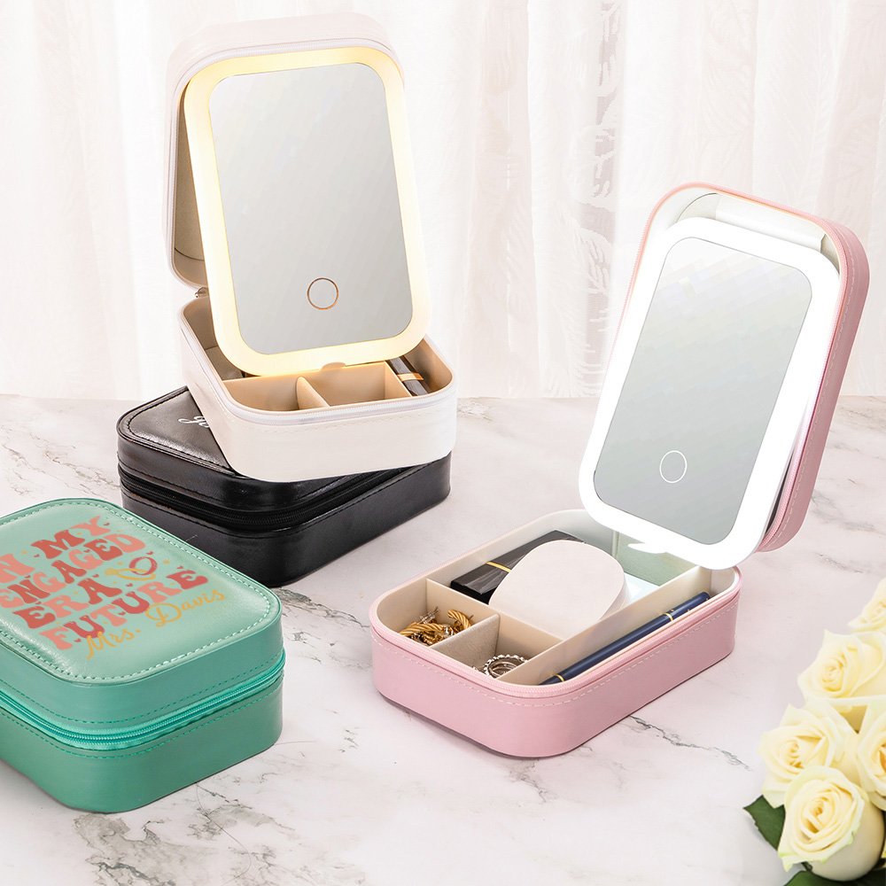 Die Schmuckschatulle ist mit einer sanften LED-Beleuchtung mit drei einstellbaren Farbeinstellungen ausgestattet: warmes Licht, natürliches Licht und kaltes Licht. Mit nur einem Knopfdruck kann das Kästchen sofort beleuchtet werden, um eine gemütliche und romantische Atmosphäre für die Schmuckauswahl zu schaffen, was es zu einer schönen Verschönerung für jeden Schminktisch oder Waschtisch macht.