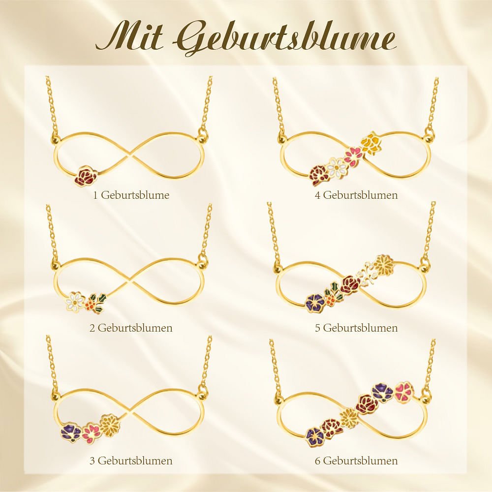 Diese einzigartige personalisierte Geburtsblumen-Halskette, die vom Unendlichkeits-Symbol inspiriert ist, kombiniert geschickt die Geburtsblumen aus buntem, tropfendem Kleber, die jeweils sorgfältig ausgewählt wurden, um die verschiedenen Geburtstagsmonate zu repräsentieren. Der Name kann auf der Halskette angepasst werden, um diese Liebe noch exklusiver und tiefgründiger zu machen.