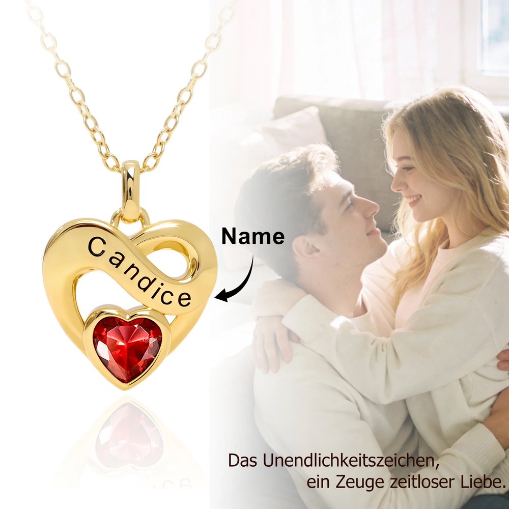 Mit dem zeitlosen Unendlichkeitssymbol und der Herzform verkörpert dieses Design die Bedeutung von endloser Liebe und ständiger Verbundenheit. Jedes Stück kann mit einem Namen versehen werden und wird so zu einem einzigartigen Gefäß für wertvolle Momente.