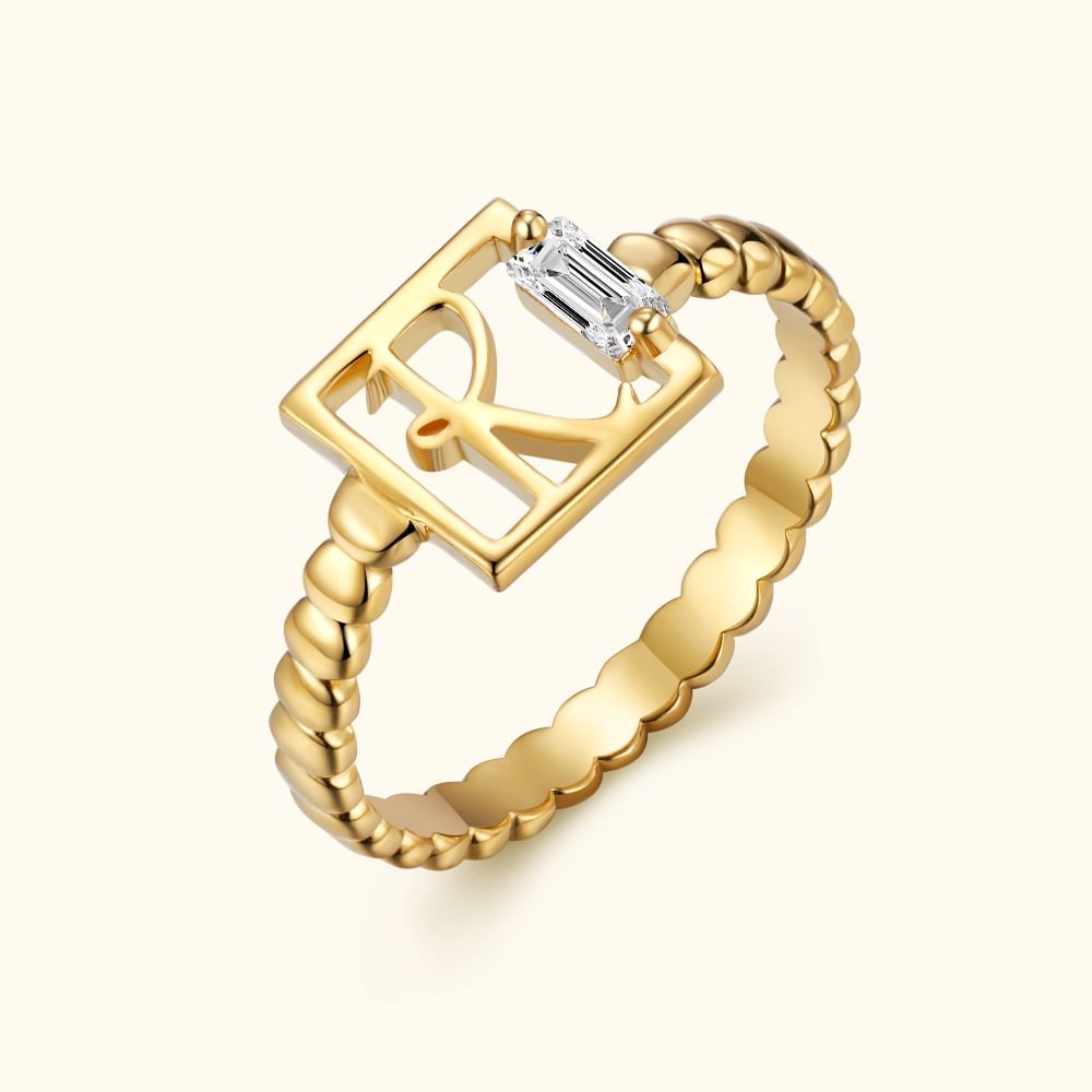 Dieser personalisierte Geburtsstein-Ring kombiniert geschickt die Initialen und Geburtsstein-Elemente in einer quadratischen Form und nimmt ein einzigartiges Ringschaft Design an. Es ist ein Schmuckstück und eine perfekte Interpretation Ihrer tiefen Zuneigung.