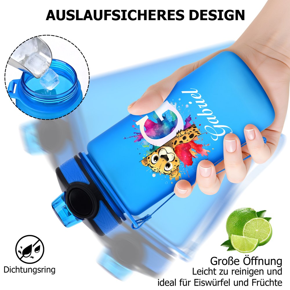 Diese Kinder-Trinkflasche überzeugt mit niedlichen Cartoon-Tiermotiven als zentrales Designelement. In Kombination mit individuell vollständigem Namen und anpassbarer Initiale im lebendigen Farbspritzer-Design entsteht ein einzigartiger Begleiter für den Alltag. Mit einem Fassungsvermögen von ca. 500 ml, ideal für den täglichen Bedarf von Kindern, einer mattierten Farbverlaufsoptik und einem praktischen Klappdeckel ist diese Flasche sowohl stilvoll als auch gut wiedererkennbar. So wird das Trinken für Kinder spielerisch und gleichzeitig zu einem persönlichen Accessoire für Schule und Freizeit.