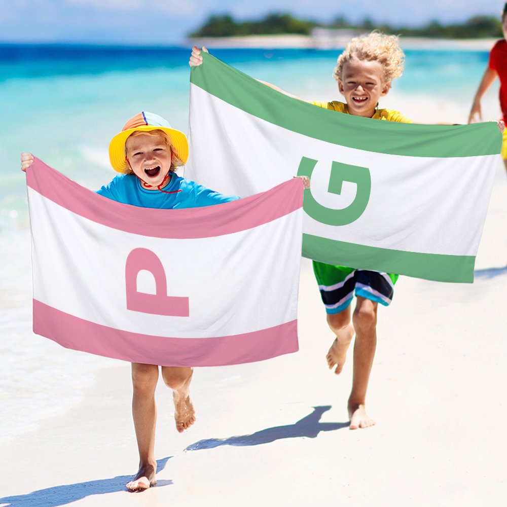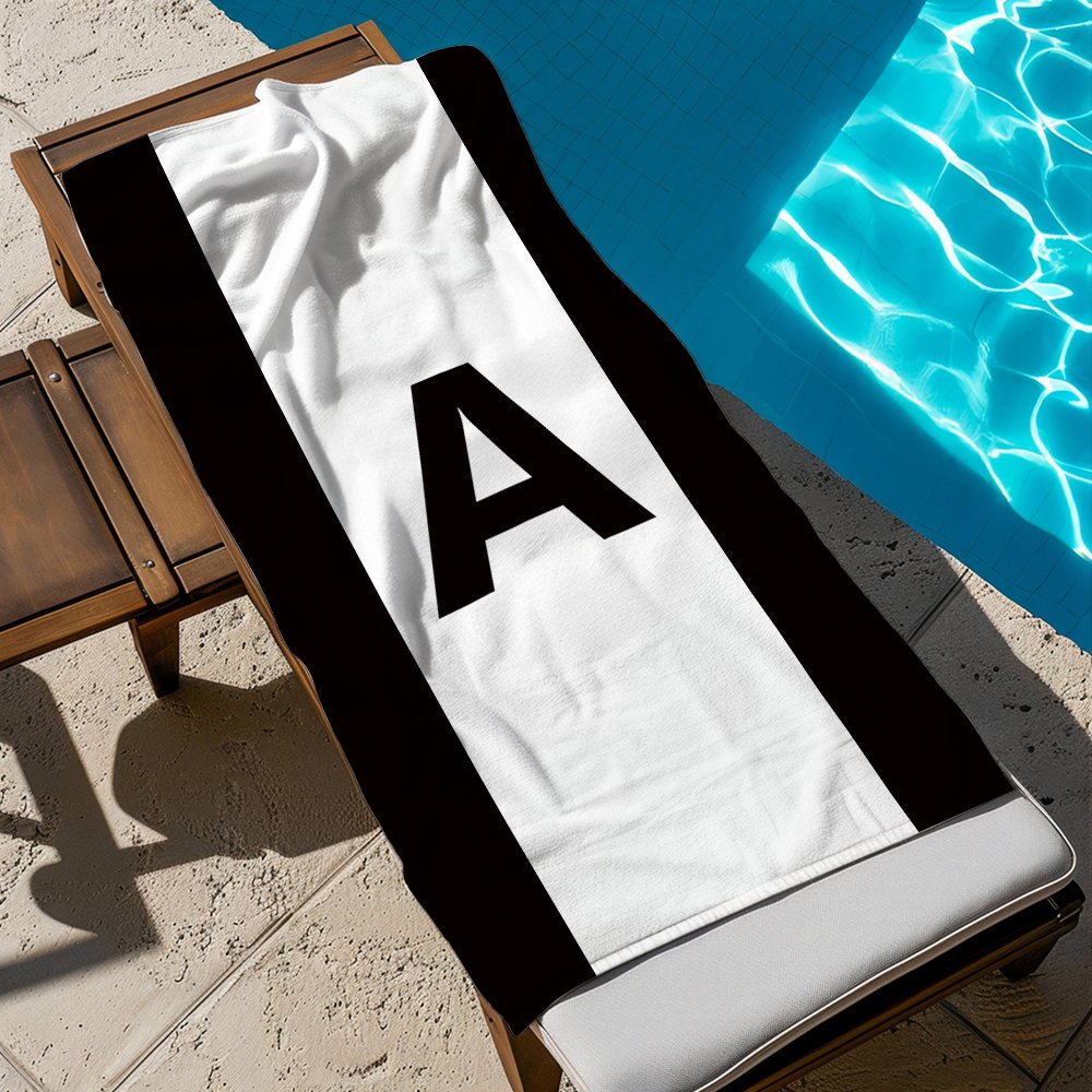 Verleihen Sie Ihrem Strandausflug mit unseren Strandtüchern eine persönliche Note. Das gestreifte Design ist einfach und elegant, Sie können es mit Ihren Initialen versehen und wir haben eine Vielzahl von Buchstabenfarben für Sie zur Auswahl. Dieses personalisierte Design macht dieses Strandtuch zu einem einzigartigen und sinnvollen Accessoire für Ihre Sommerabenteuer.