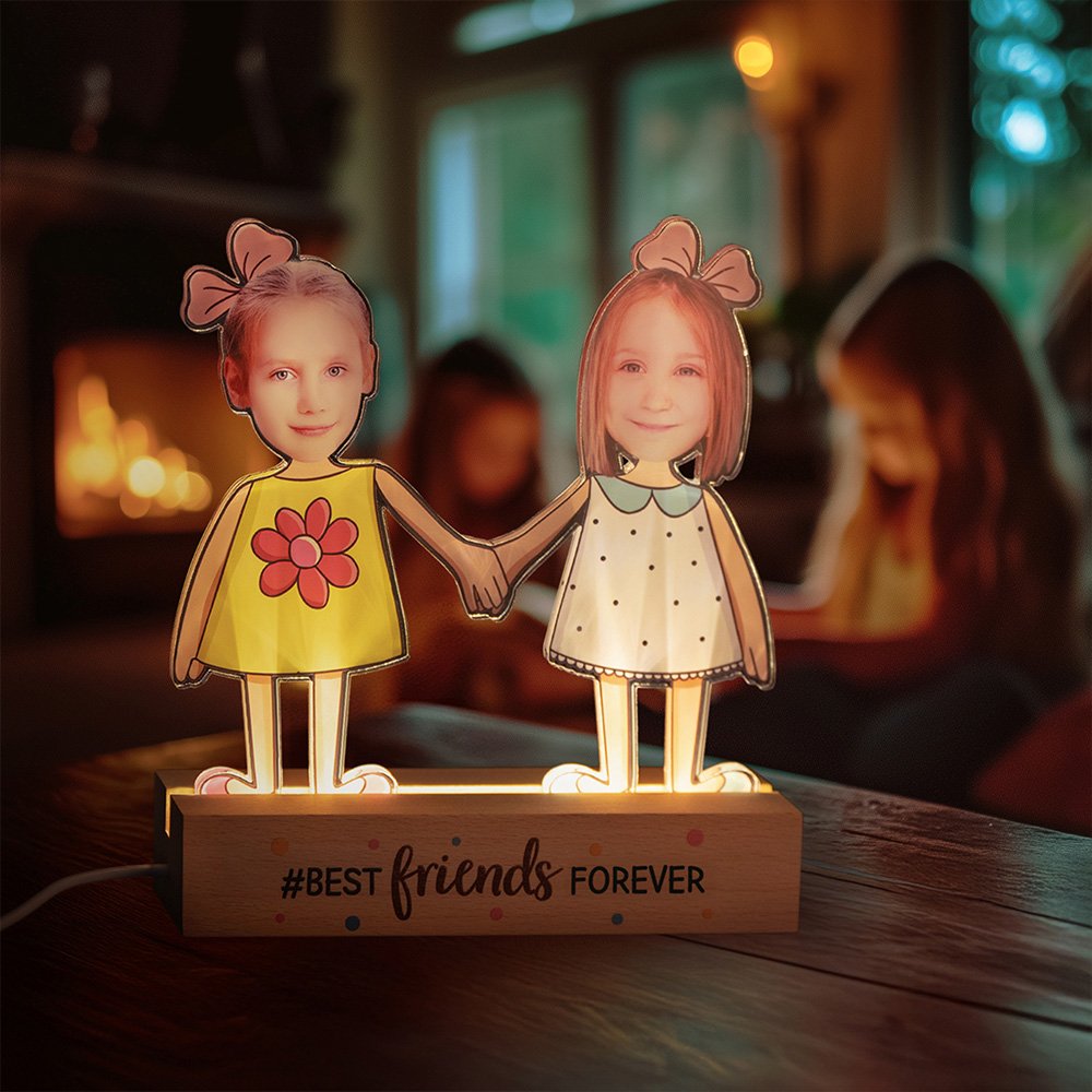 Dieses LED-Nachtlicht ist von einem Kinderfoto inspiriert und kann je nach Bedarf mit einem Cartoon-Bild von zwei kleinen Mädchen, zwei kleinen Jungen oder einem kleinen Jungen und einem kleinen Mädchen gestaltet werden. Es hat auch einen festen Text "Best Friends Forever", so dass es nicht nur eine Dekoration, sondern auch eine einzigartige Gedenksammlung ist.