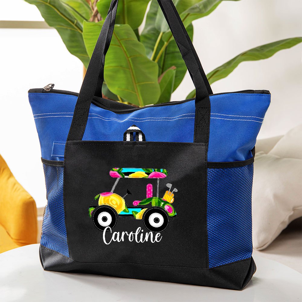 Diese Tragetasche ist perfekt für den Transport von Golfutensilien und kann auch als vielseitige Alltagstasche verwendet werden. Das helle Golfwagen-Muster verleiht jedem Outfit einen Hauch von Mode und Einzigartigkeit. Ob es sich um einen Tag auf dem Golfplatz, einen Einkaufsbummel oder einen lässigen Ausflug handelt, diese personalisierte Tragetasche ist praktisch und stilvoll.