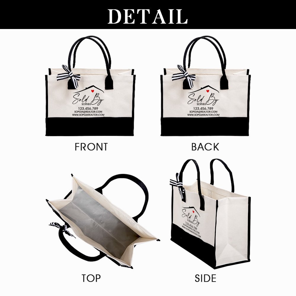 Indem Sie die Tragetasche mit Ihrem Namen, Ihrer Telefonnummer, Ihrer E-Mail-Adresse und Ihrer Website individuell gestalten, schaffen Sie ein wirkungsvolles Instrument für Ihr Branding. Sie ermöglicht es potenziellen Kunden, Sie mühelos zu erreichen, und wirbt für Ihre Dienstleistungen, wo immer Sie hingehen, was sie zu einem unschätzbaren Vorteil für die Vernetzung und Vermarktung Ihres Immobiliengeschäfts macht.