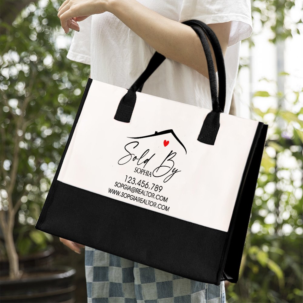 Unsere personalisierte wasserdichte Tragetasche ist ein praktisches und professionelles Geschenk für Immobilienmakler. Sie verfügt über ein stilvolles Design mit einem Dach- und Herzsymbol, das für den Immobilienberuf und die Verpflichtung zu hervorragendem Service steht. Die Tasche kann mit Ihrem Namen, Ihrer Telefonnummer, Ihrer E-Mail-Adresse und Ihrer Website personalisiert werden, was sie zu einem effektiven Marketinginstrument macht.