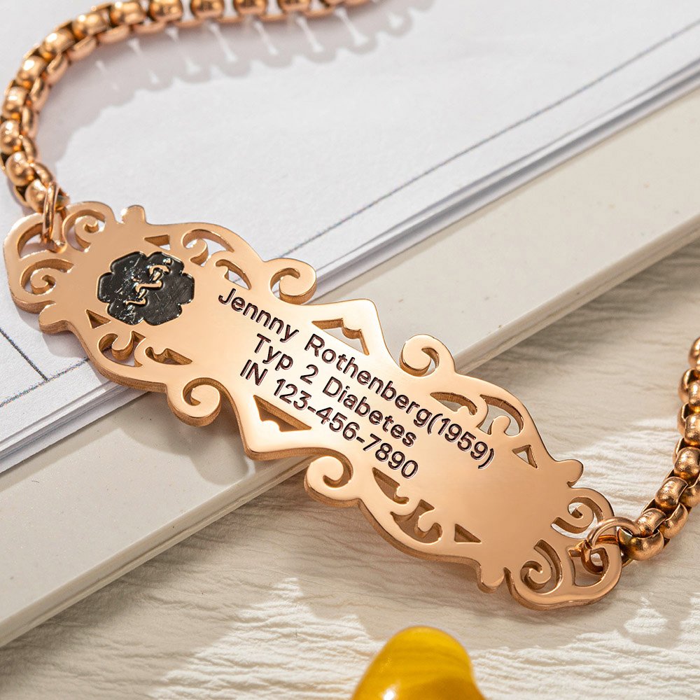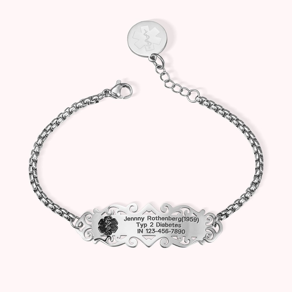 Das personalisierte ID-Armband für medizinische Alarme ist die perfekte Kombination aus Sicherheit und Stil. Diese Armbänder sind aus hochwertigem Edelstahl, Messing oder Sterlingsilber gefertigt. Sie können wählen, welches Material Sie mögen. Diese Armbänder sehen nicht nur elegant aus, sondern sind in Notfällen auch sehr nützlich.