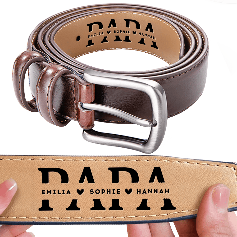 Dieser Gürtel ist in vier Farben erhältlich, um den unterschiedlichen Vorlieben und Bedürfnissen gerecht zu werden. Auf der Vorderseite kann der Name des Vaters eingraviert werden, während die Rückseite Platz für Kosenamen und die Namen von bis zu 12 Kindern oder Familienmitgliedern bietet – ein Ausdruck tiefer familiärer Verbundenheit.