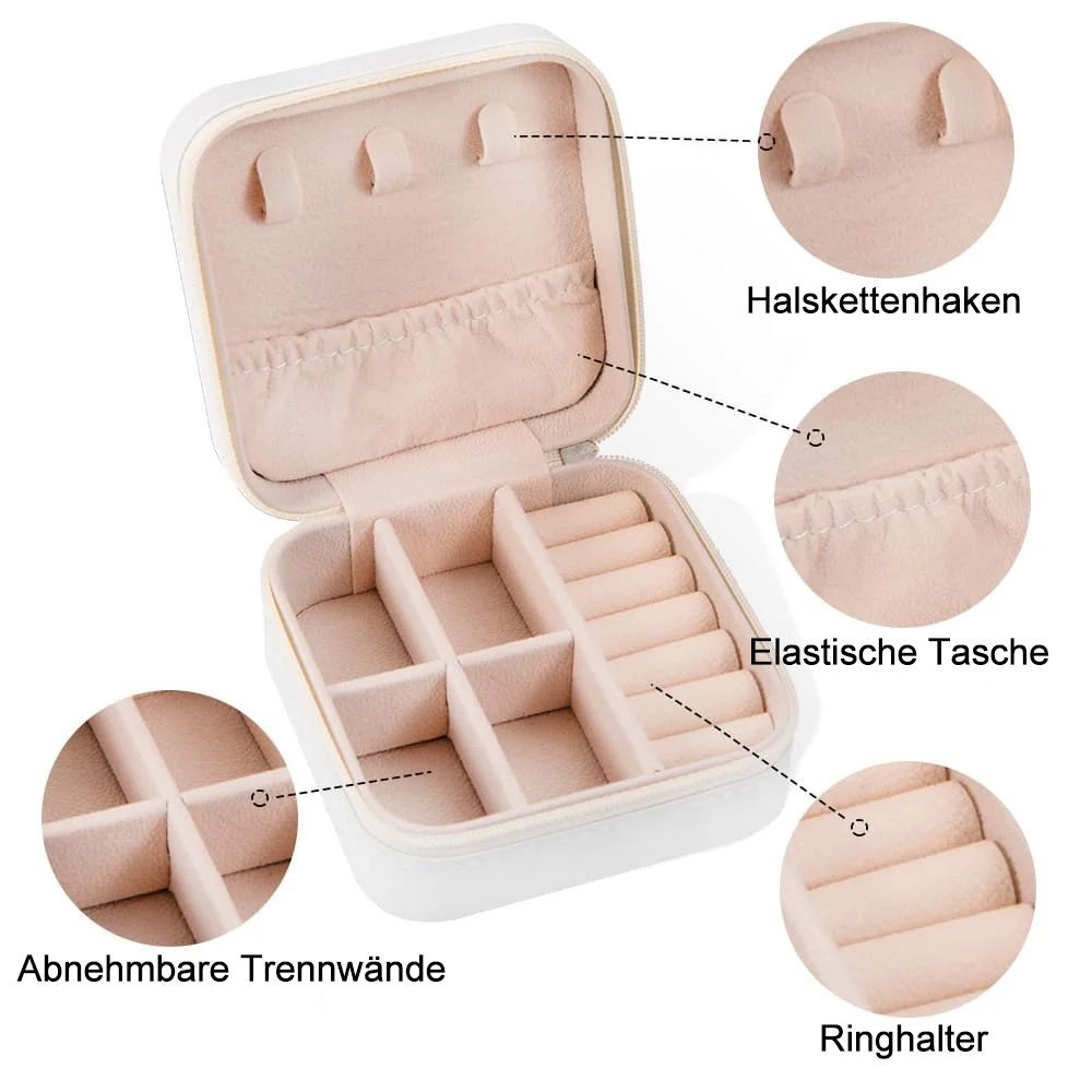 【Funktionsweise】 Diese tragbare Schmuckschatulle verfügt über zwei abnehmbare Fächer und verschiedene unabhängige Bereiche, in denen Sie Ihren Schmuck so organisieren können, wie es für Sie am besten ist. Sie ist perfekt für Reisen, die Aufbewahrung zu Hause oder die Mitnahme unterwegs. |