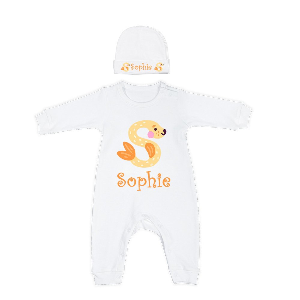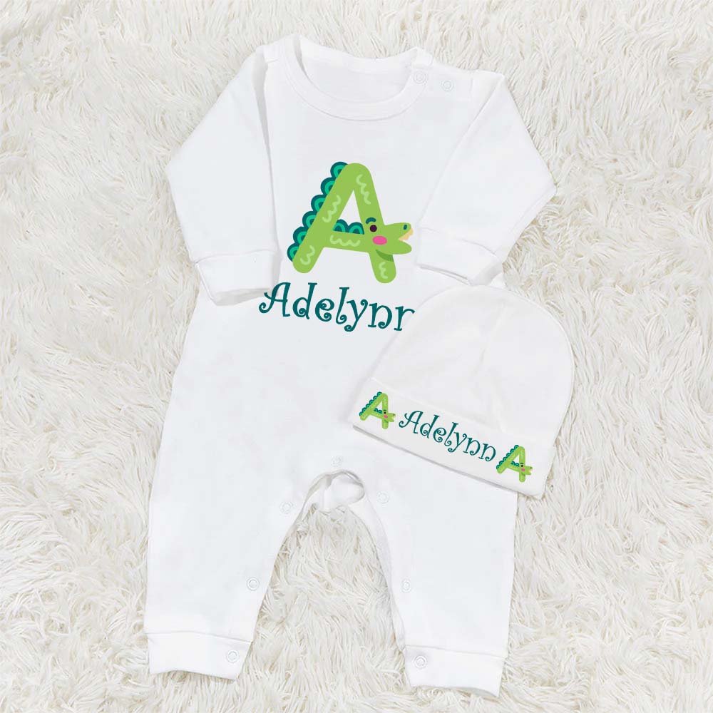 Passend für Neugeborene bis 24 Monate. (KINDLY NOTE): Der Buchstabe und das Tier auf dem Strampler und der Mütze werden durch die Initialen des Babys bestimmt.
