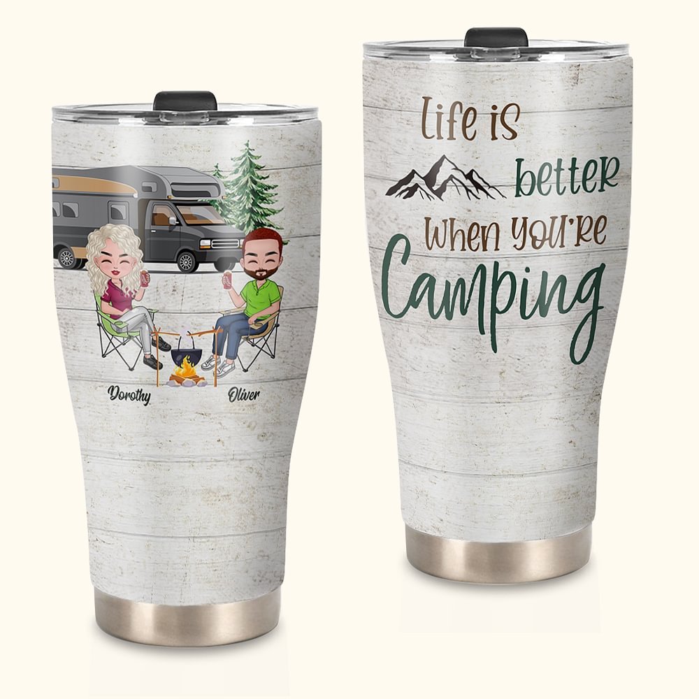 Der auslaufsichere Deckel sorgt dafür, dass Ihr Getränk frisch bleibt und nicht verschüttet wird. Unser Becher mit Campingmotiv ist die beste Wahl für Sie und Ihren Liebhaber beim Camping. (GESCHENKANLÄSSE): Dieser Becher eignet sich sowohl für heiße als auch für kalte Getränke und ist somit perfekt für alle Jahreszeiten. Überraschen Sie Ihre Liebsten mit diesem Becher zu Ihrem Jahrestag, Valentinstag oder als Geschenk für Paare, die gerne campen.