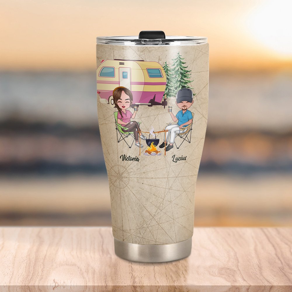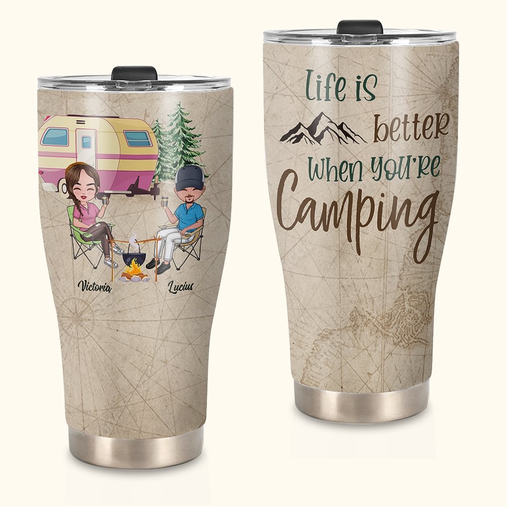Der auslaufsichere Deckel sorgt dafür, dass Ihr Getränk frisch bleibt und nicht verschüttet wird. Unser Becher mit Campingmotiv ist die beste Wahl für Sie und Ihren Liebhaber beim Camping. (GESCHENKANLÄSSE): Dieser Becher eignet sich sowohl für heiße als auch für kalte Getränke und ist somit perfekt für alle Jahreszeiten. Überraschen Sie Ihre Liebsten mit diesem Becher zu Ihrem Jahrestag, Valentinstag oder als Geschenk für Paare, die gerne campen.
