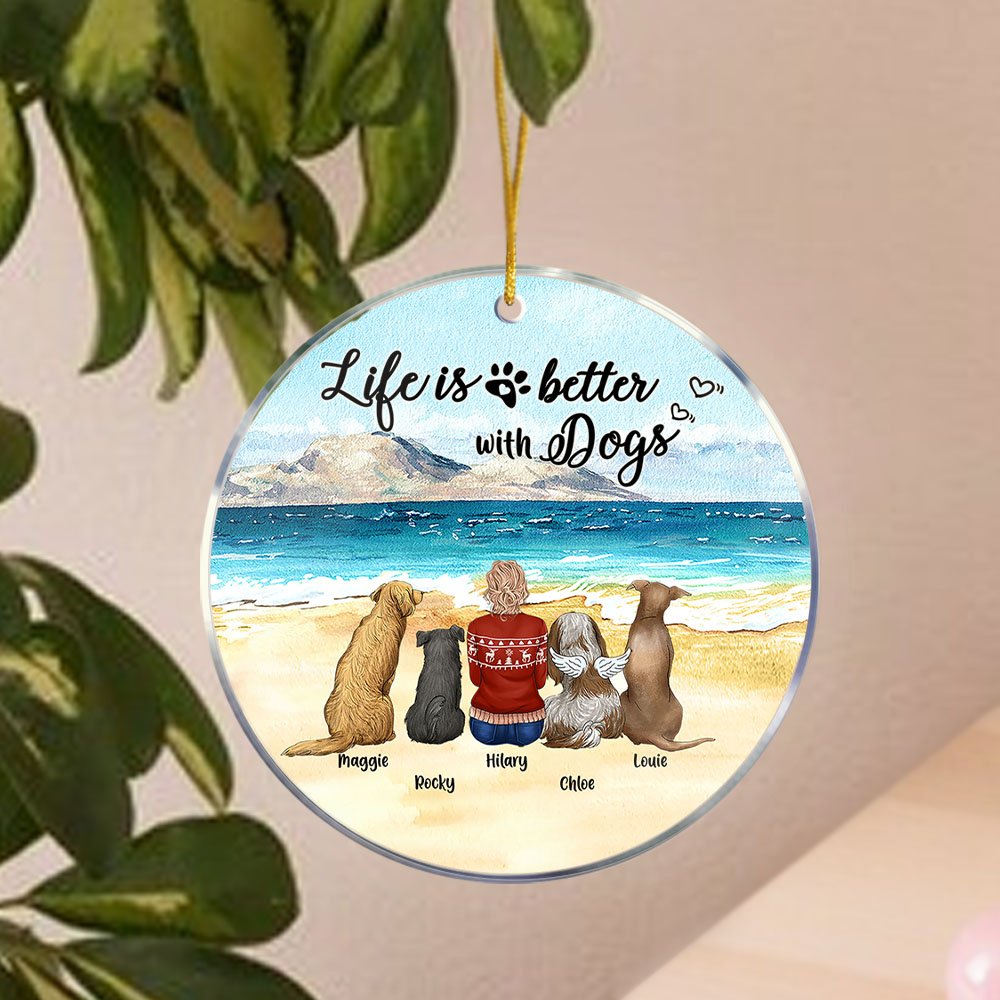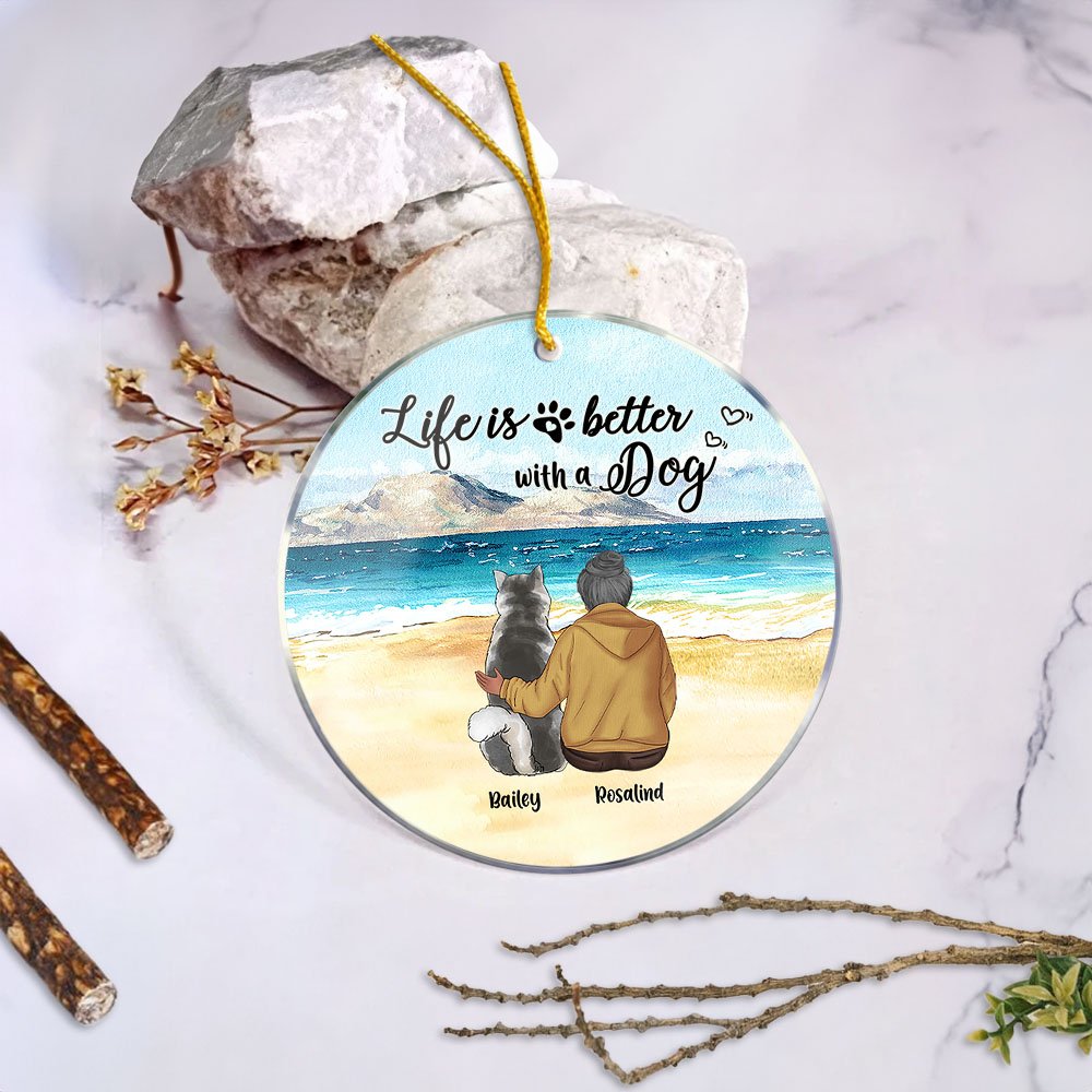 Der Meereshintergrund verleiht der Dekoration ein Gefühl von Harmonie und Ruhe. "Life is Better with a Dog" zeigt Ihre Liebe und Abwesenheit für Hunde. Die hängende runde Form fühlt sich sanft an, so dass es sich von anderen Accessoires abhebt und wirklich Ihre Liebe zu Ihrem Hund zeigt.