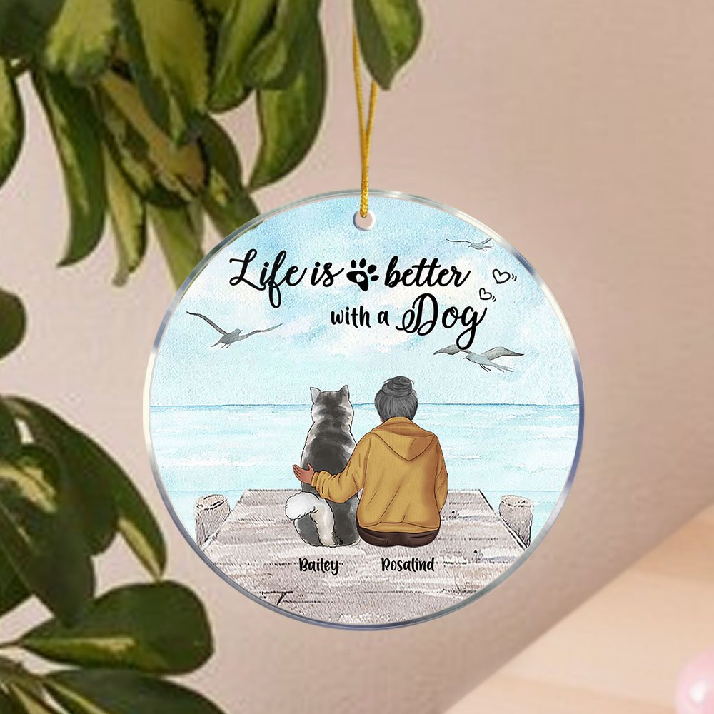 Der Hintergrund mit den Möwen verleiht der Dekoration ein Gefühl von Frieden und Freiheit. "Life is Better with a Dog" zeigt Ihre Liebe und Ihr Fehlen für Hunde. Die hängende runde Form fühlt sich sanft an, wodurch sie sich von anderen Accessoires abhebt und wirklich Ihre Liebe zu Ihrem Hund zeigt.