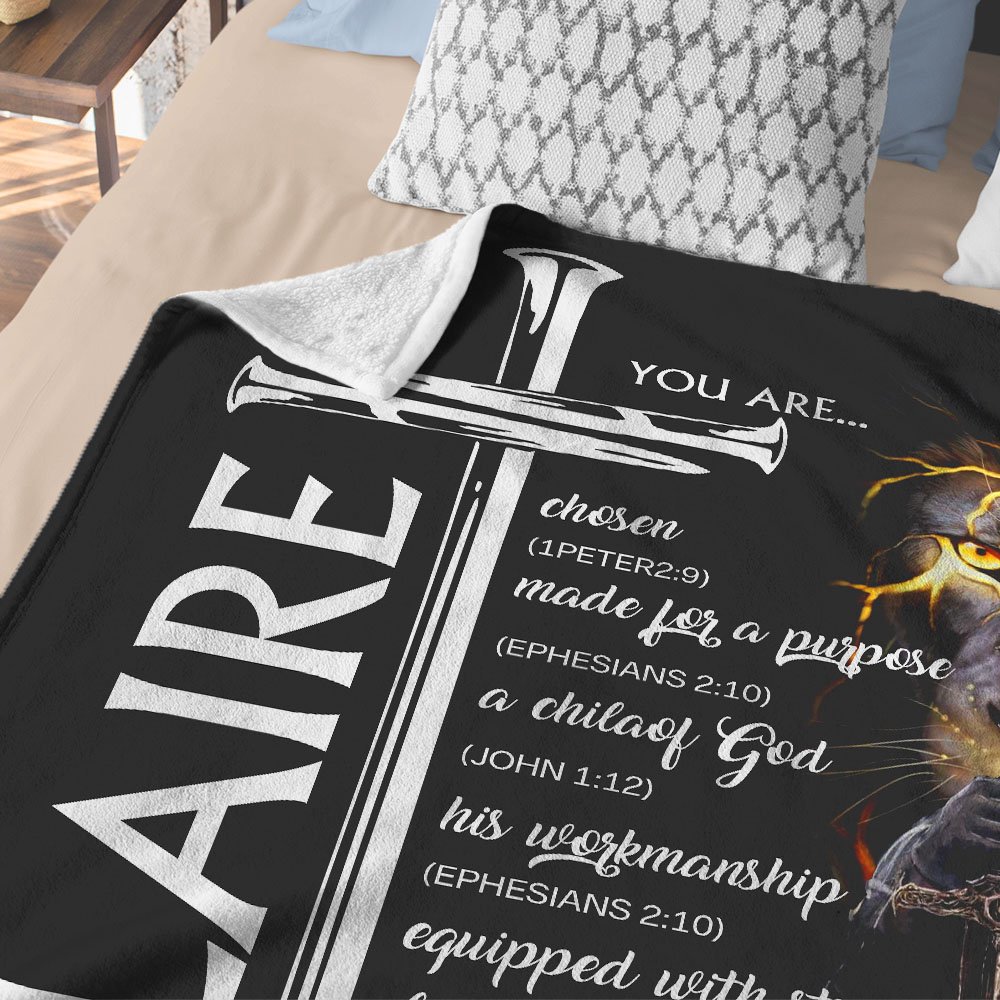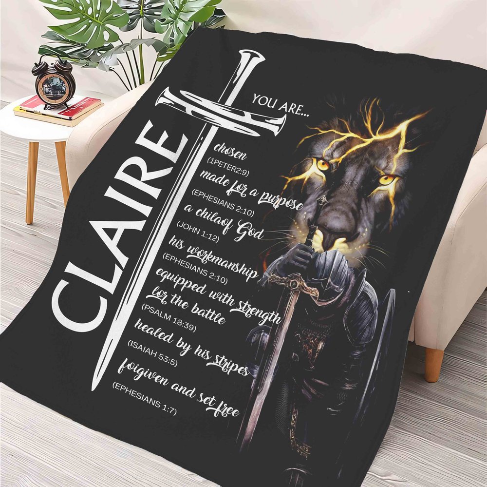 Das Design dieser Decke ist von großer religiöser Bedeutung. Das auffällige Kreuz auf der linken Seite ist feierlich und symbolisiert den Kern des christlichen Glaubens. Der anpassbare Name verleiht ein Gefühl der Exklusivität. Der majestätische Löwe auf der rechten Seite ist lebensecht und erinnert an die biblische Kultur, was eine geheimnisvolle und feierliche Atmosphäre schafft. Die Decke ist sorgfältig mit vielen inspirierenden Bibelstellen bedruckt, um die Kraft des Glaubens zu vermitteln.