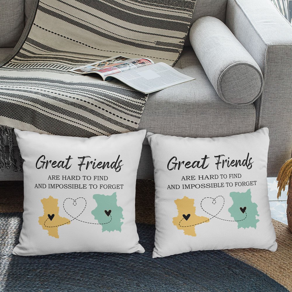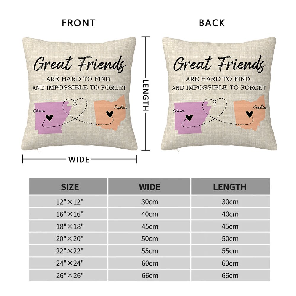 Dieser Kissenbezug ist mit einem Kartenmuster bedruckt, und Sie können den Namen nach Ihrem Standort wählen. Sie können auch den Text auf dem Kissenbezug nach Ihren Wünschen wählen, und jeder Text spiegelt die tiefe Freundschaft zwischen Ihnen und der anderen Person. Sie können auch Ihren Namen und den Namen der anderen Person aufdrucken, um den Kissenbezug noch einzigartiger zu machen.