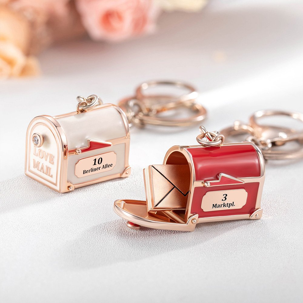 Dieser Liebesbrief-Briefkasten-Schlüsselanhänger zeichnet sich durch ein charmantes Design mit der festen „LOVE MAIL“-Anzeige aus. Der Briefkasten enthüllt einen individuell gestaltbaren Liebesbrief, den Sie jederzeit lesen können, was ihn zu einem perfekten romantischen Andenken macht.