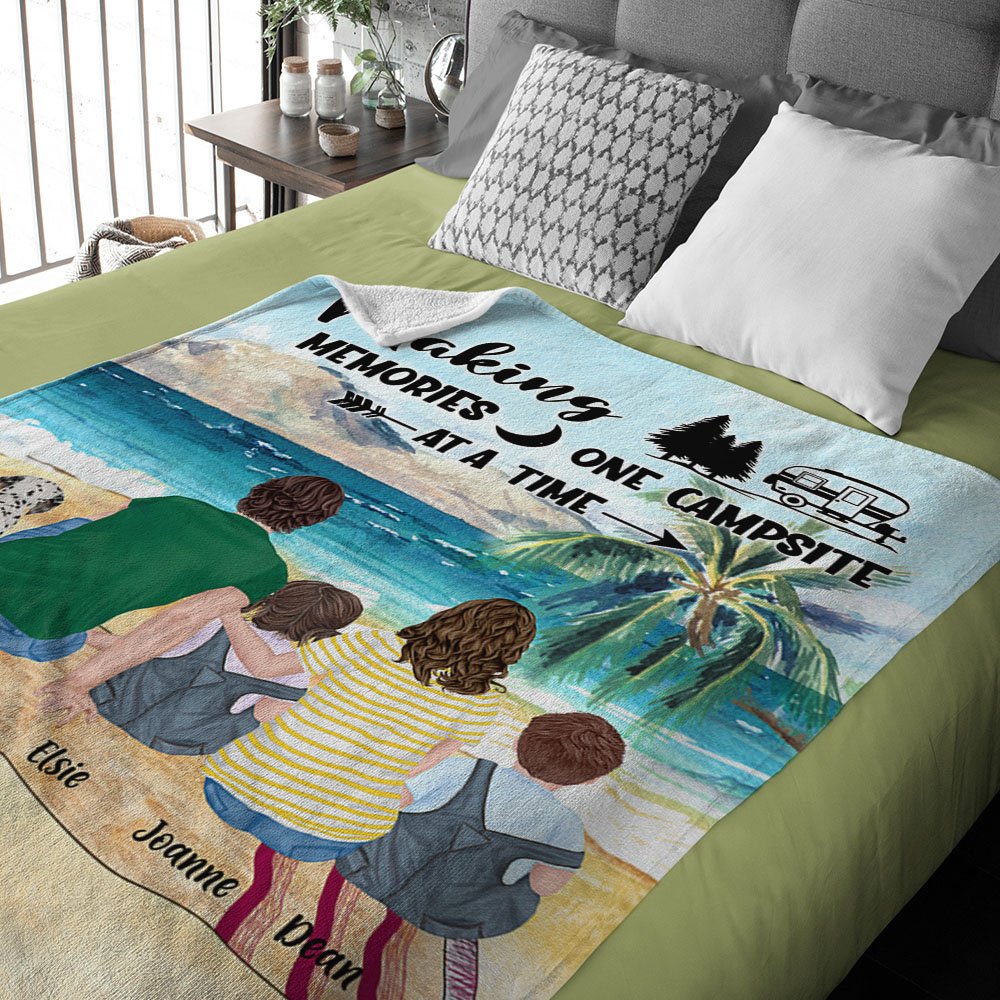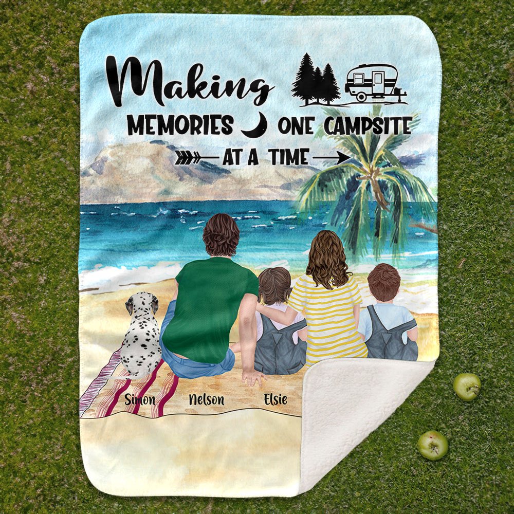 Personalisierte Making Memories One Campsite At A Time Blanket Geburtstagsgeschenk für Paar Familie Camping Liebhaber