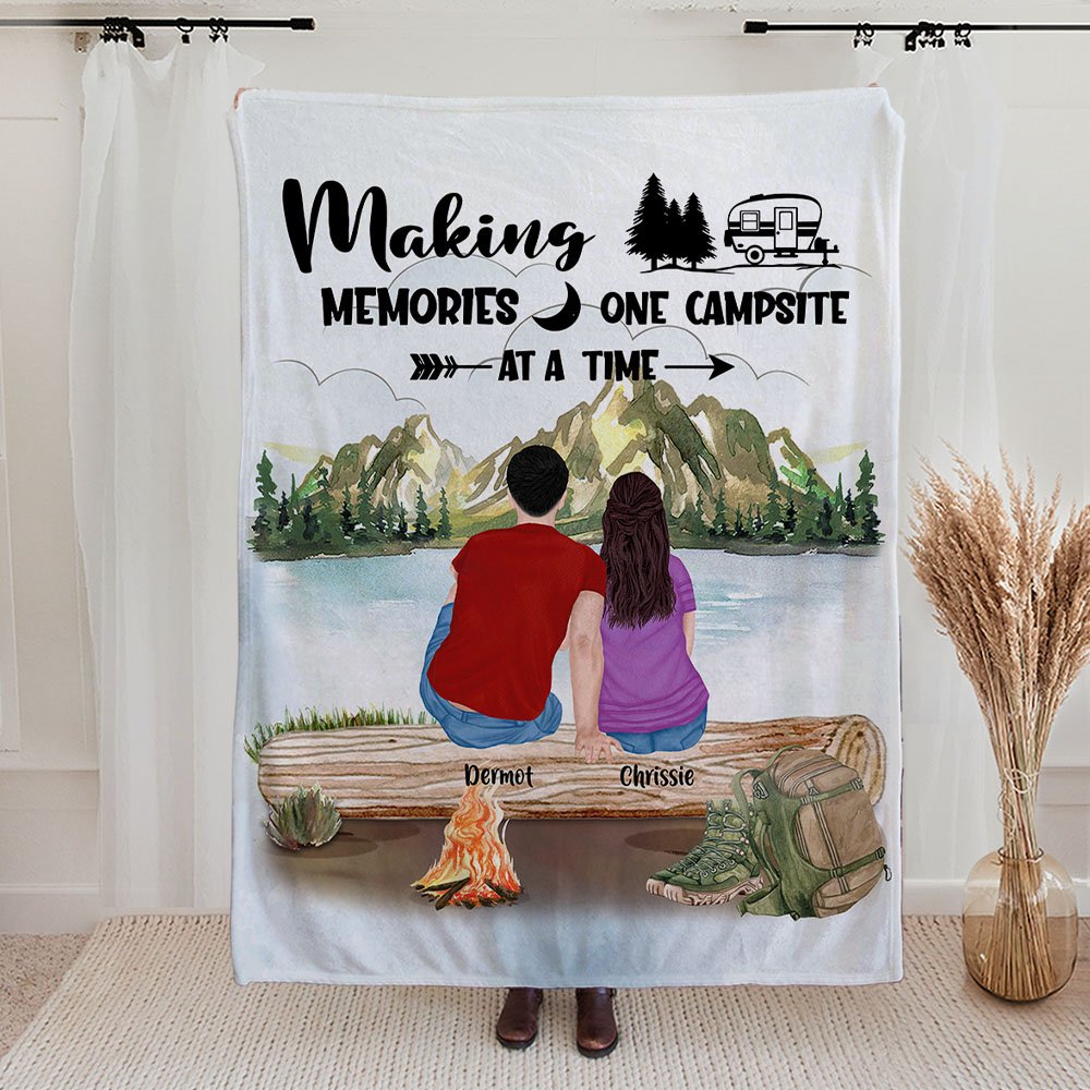 Personalisierte Making Memories One Campsite At A Time Decke Skin Friendly Geburtstag Geschenk für Paar Familie Camping Liebhaber