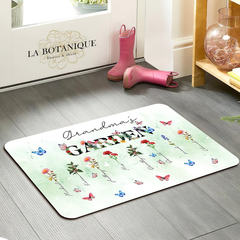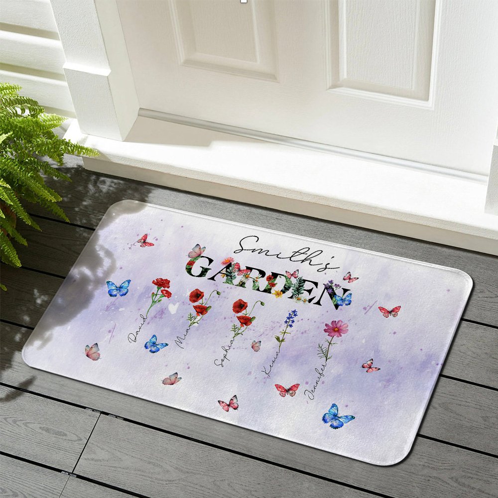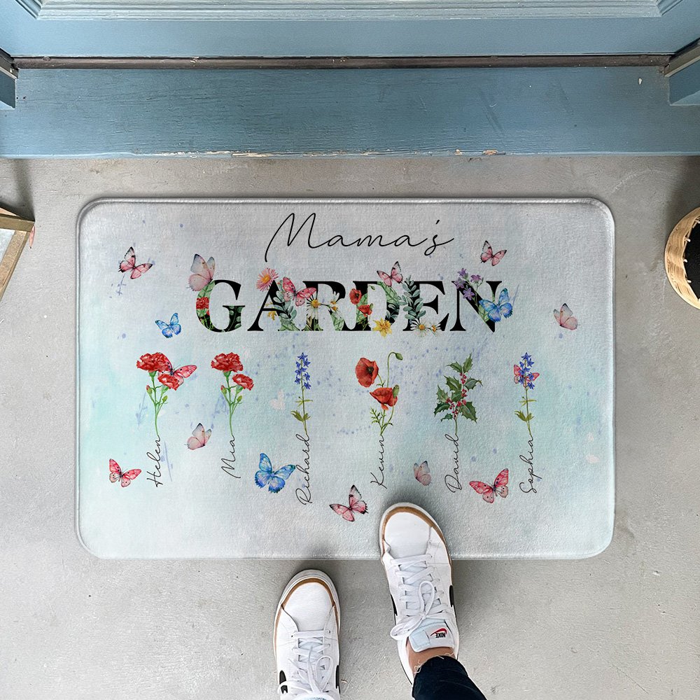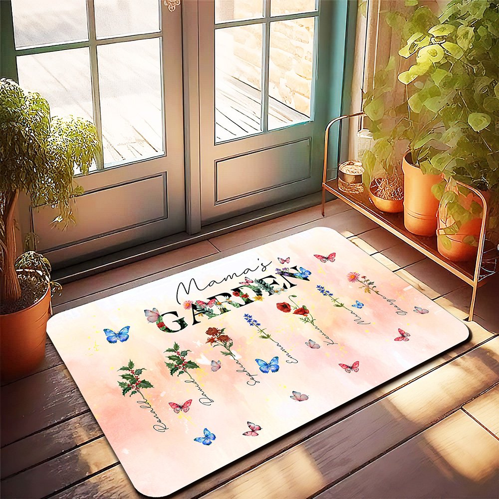 Diese Türmatte lässt sich so individuell gestalten wie keine andere. Wählen Sie 1 bis 8 Geburtsblumen aus einem vollständigen Satz von zwölf monatlichen Blumenmustern, die jeweils eine besondere Person in Ihrer Familie symbolisieren. Jede Blume ist elegant mit dem entsprechenden Namen versehen und verwandelt diesen Artikel in eine besondere Hommage, die die Schönheit der Natur mit persönlichen Gefühlen verbindet.