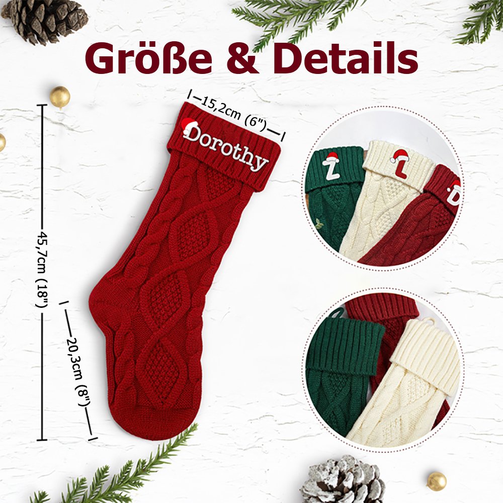 Jeder Strumpf wird mit einem gestickten Namen oder Buchstaben personalisiert und verleiht jedem Familienmitglied das Gefühl, an den Festtagen teilzunehmen. Der Brief mit der charmanten Weihnachtsmannmütze macht jeden Strumpf einzigartig und unvergesslich.