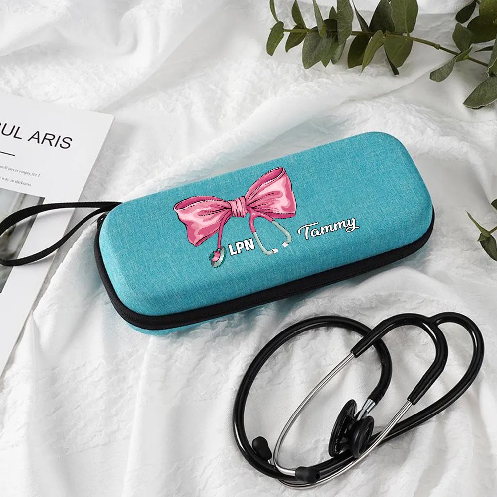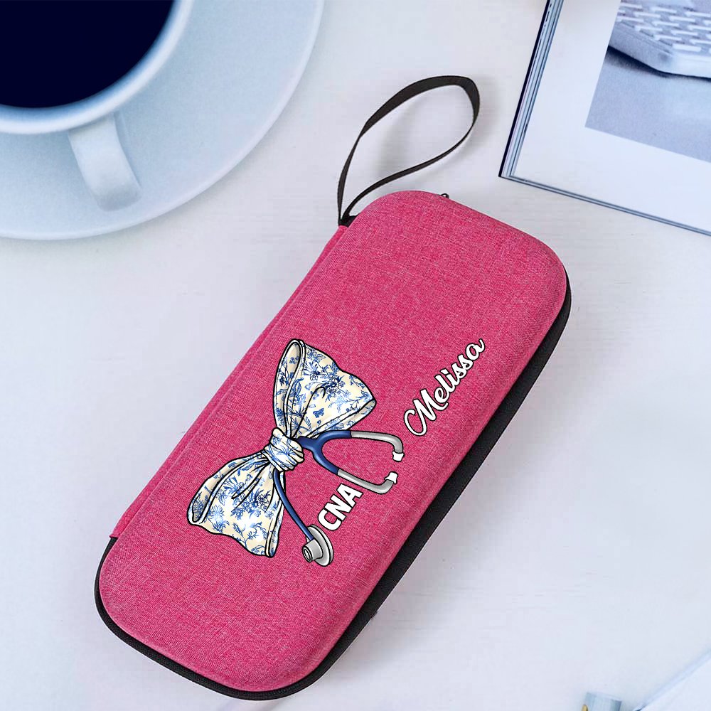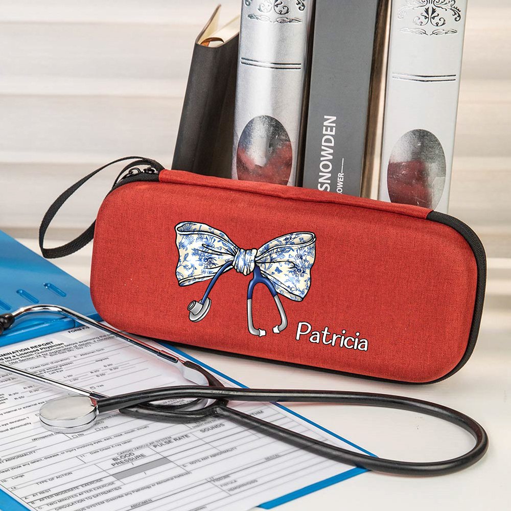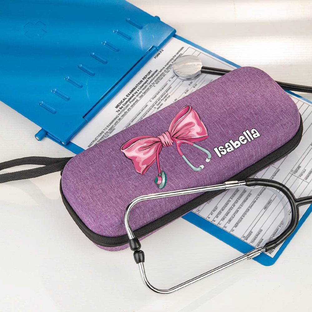 Diese Aufbewahrungsbox für Stethoskope besticht durch ihr stilvolles Design mit einer rosa oder blauen Schleife und einem Stethoskop-Motiv. Die Kombination aus Eleganz und Zweckmäßigkeit macht sie zu einem perfekten Accessoire für medizinische Fachkräfte. Gestalten Sie die Tasche mit der Berufsbezeichnung und dem Namen, um Ihren Dank und Ihre Bewunderung für ihre Leistungen auszudrücken.