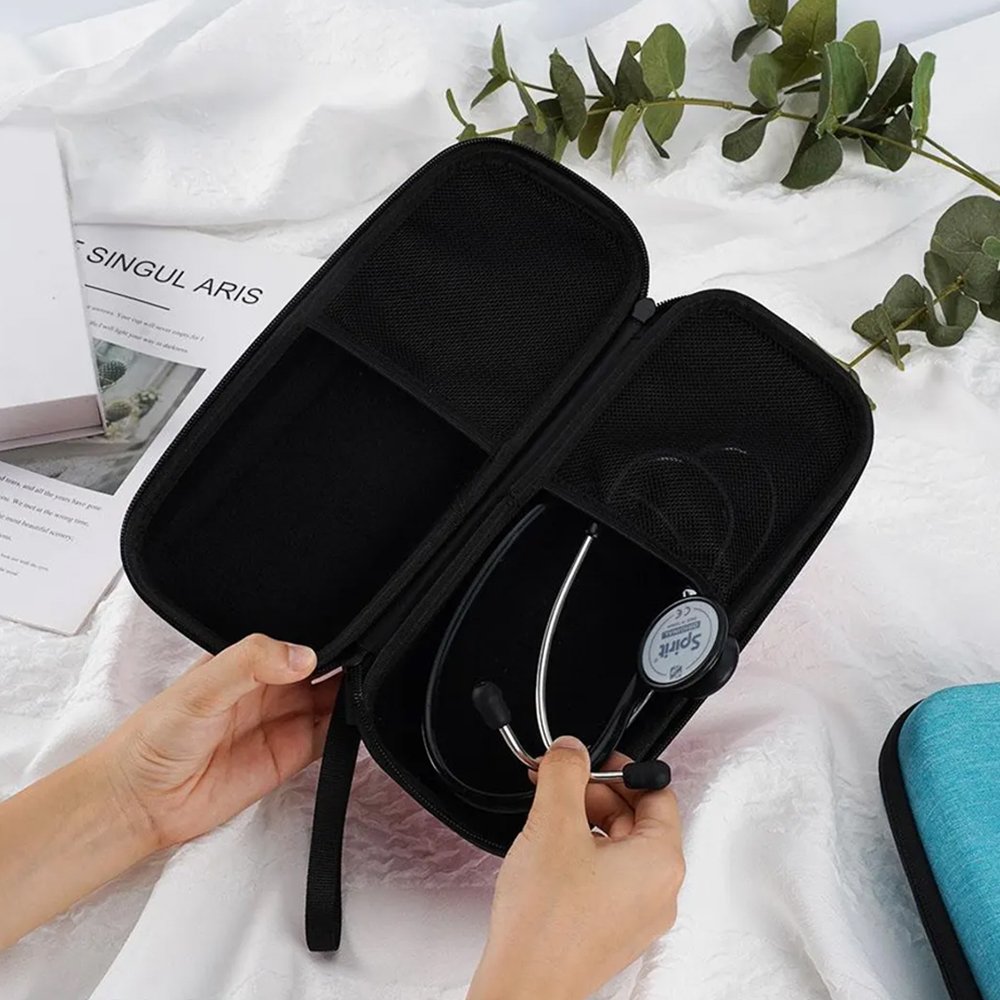 Die Aufbewahrungstasche ist aus strapazierfähigem EVA-Material gefertigt, um den Anforderungen eines geschäftigen medizinischen Umfelds gerecht zu werden. Das hochwertige Material ist nicht nur robust, sondern auch leicht zu reinigen und behält sein ursprüngliches Aussehen für lange Zeit. Mit einem sicheren Reißverschluss und Netzfächern im Inneren bietet sie reichlich Platz für Stethoskope, Stifte, Klebeband und andere wichtige Dinge, so dass alles organisiert und leicht zugänglich ist.