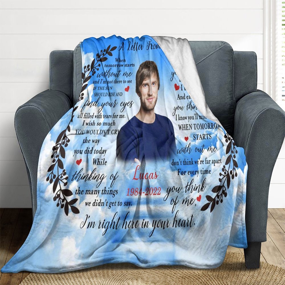 Wie Sie auf den Bildern sehen können, ist unsere Gedenkdecke mit "A Letter From Heaven" entworfen; Daher können Sie ein Halbkörperfoto Ihres geliebten Menschen oder Haustieres hochladen, um Ihr persönliches DIY Handwerk zu machen. (LANGLEBIGE GESCHENKE): Diese Decken sind denkwürdige Geschenke, die verwendet werden können, um Ihr geliebtes Haustier zu erinnern, sich an geliebte Menschen zu erinnern, oder einfach als traditionelle Geschenke.