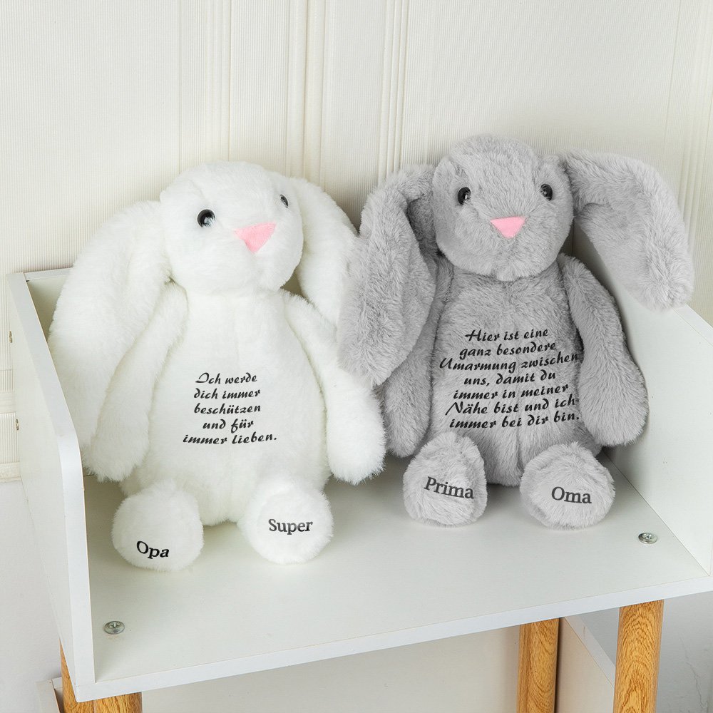 Der Verlust eines geliebten Menschen ist schwer, besonders für Kinder. Alle Kinder lieben Plüschtiere, und diese bezaubernde Tierpuppe ist dafür gedacht, einem jungen Menschen als einzigartiges und aufmerksames Andenken geschenkt zu werden. (PERSONALISIERUNG): Bei unserem Plüschtier kann der Text auf dem Bauch und den Füßen der Puppe individuell gestaltet werden, um ein besonderes Andenken für ein trauerndes Kind zu schaffen. Dieses Spielzeug ist nicht nur ein lebenslanger Freund, sondern auch eine Erinnerung an ein besonderes kleines Kind, dass es unendlich geschätzt wird. (MIT SORGFALT HANDGEFERTIGT): Dieses Plüschtier wurde aus hochwertigen Materialien hergestellt. Das weiche Polyestergewebe macht es sowohl anschmiegsam als auch langlebig. (GESCHENKANLASS): Dieser Plüsch-Hase ist das perfekte Geschenk von Komfort und Liebe. Mehr als nur ein Plüschtier und macht ein großes Geschenk Wahl für Nichten, Neffen, Geschwister, Kinder oder Freunde.